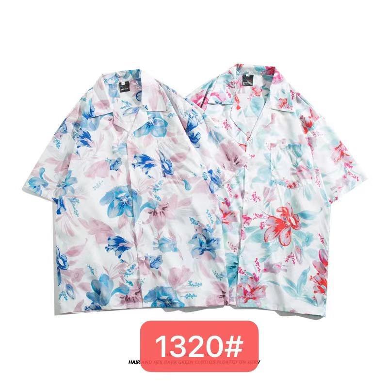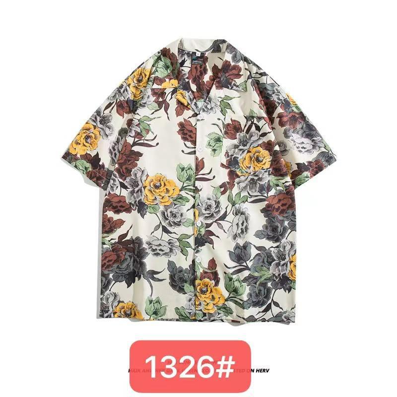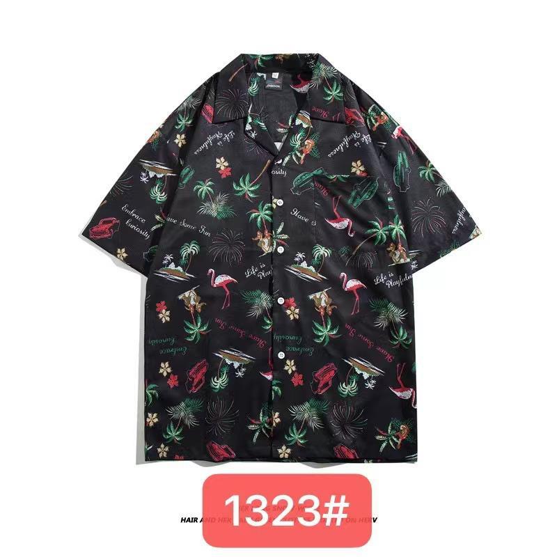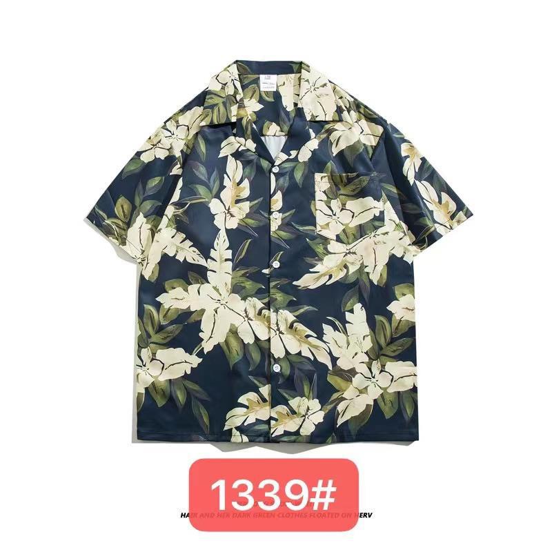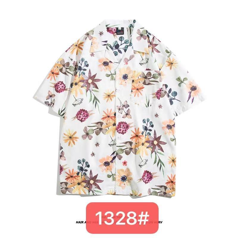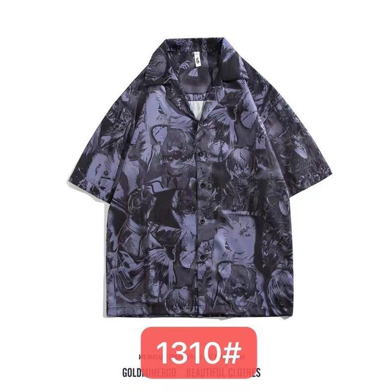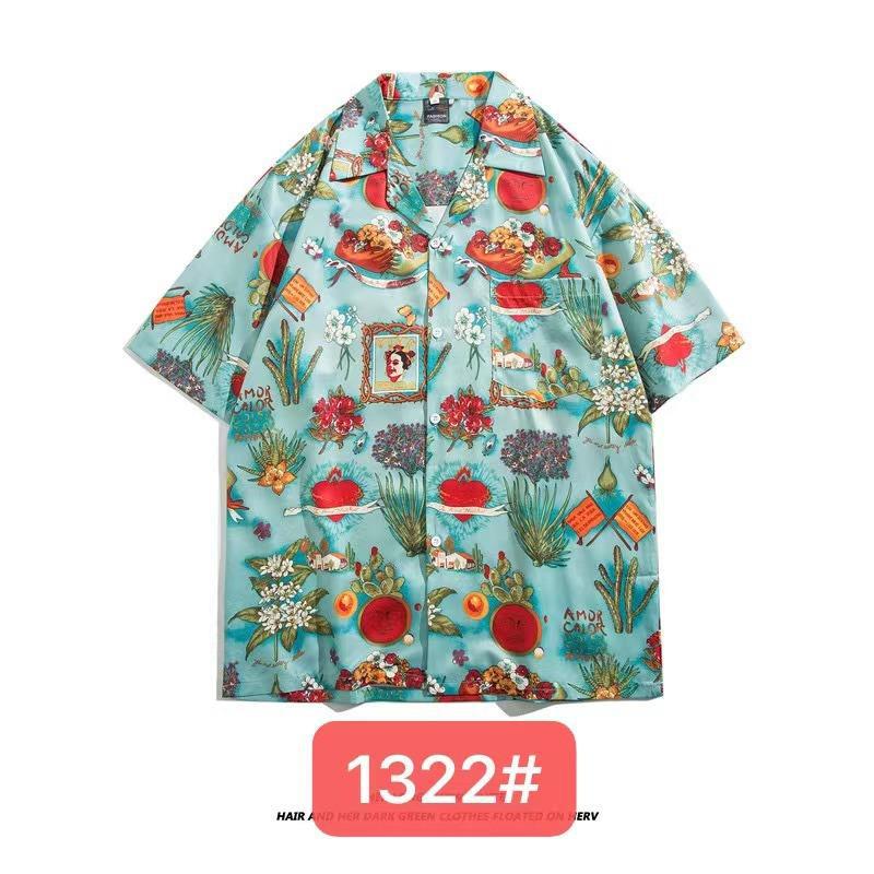 미국 서부 해안! 패션 브랜드 복고풍 셔츠 남성과 여성 커플 여름 쿠바 칼라 짧은 소매 토템 셔츠 패션 인쇄스토어 가기