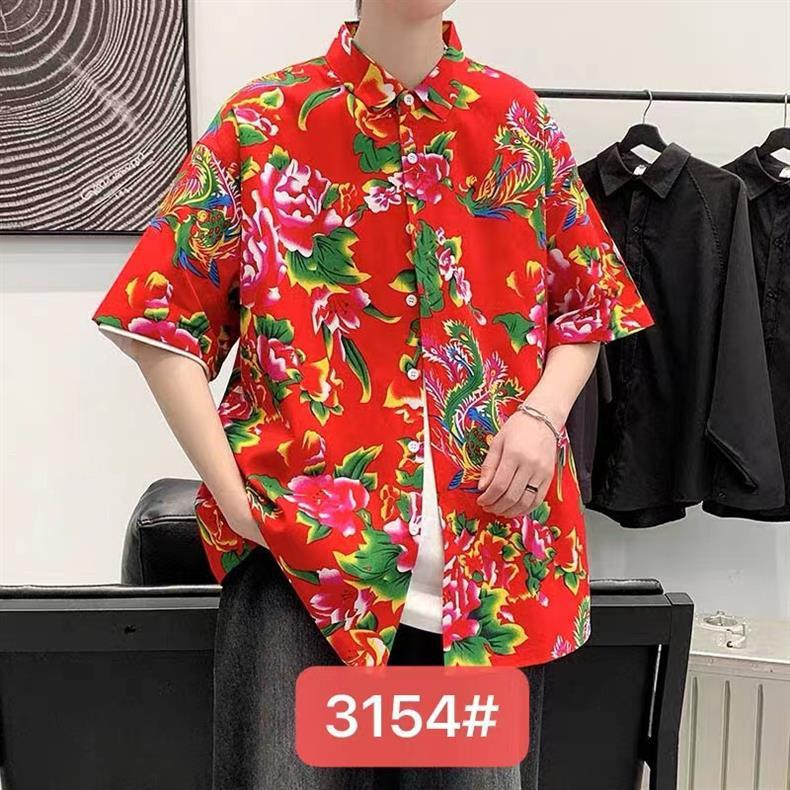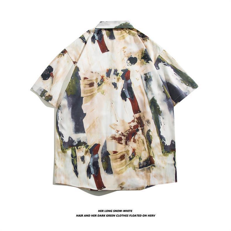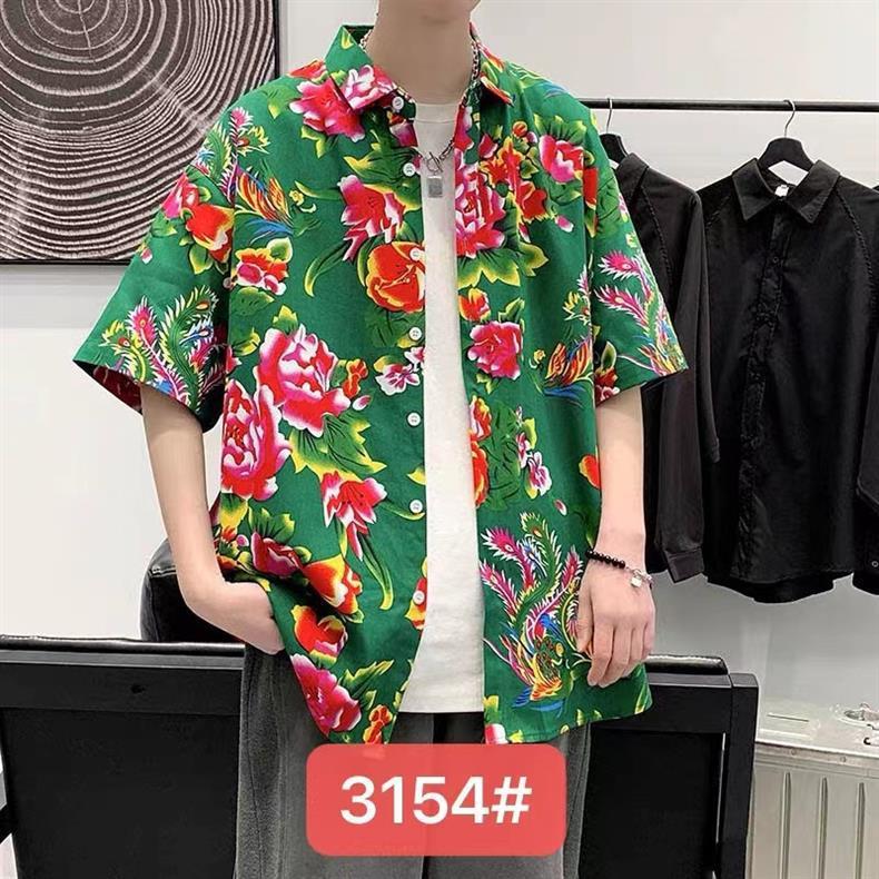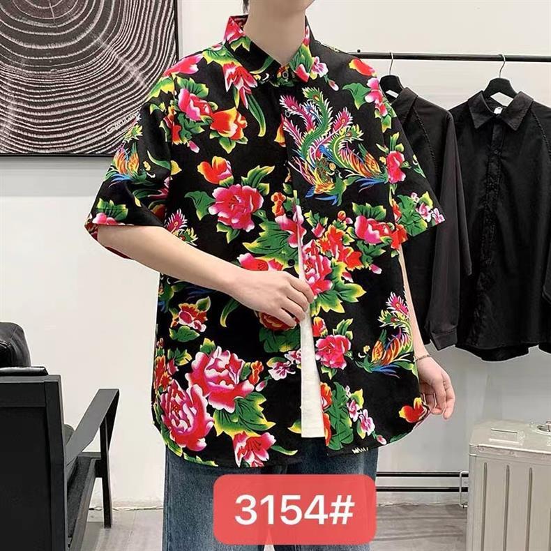미국식 빈티지 해바라기 하와이 귀여운 홍콩 스타일 느슨한 캐주얼 남성과 여성의 반팔 꽃 무늬 셔츠