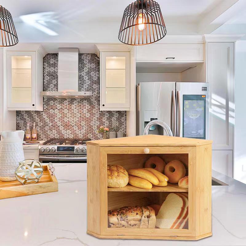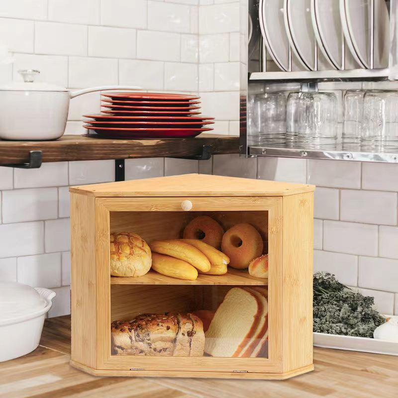 나무 빵 상자 주방 코너 뚜껑 저장 빵 상자를 가진 더블 레이어 간단한 단단한 나무 저장 상자 간식 디스플레이 상자