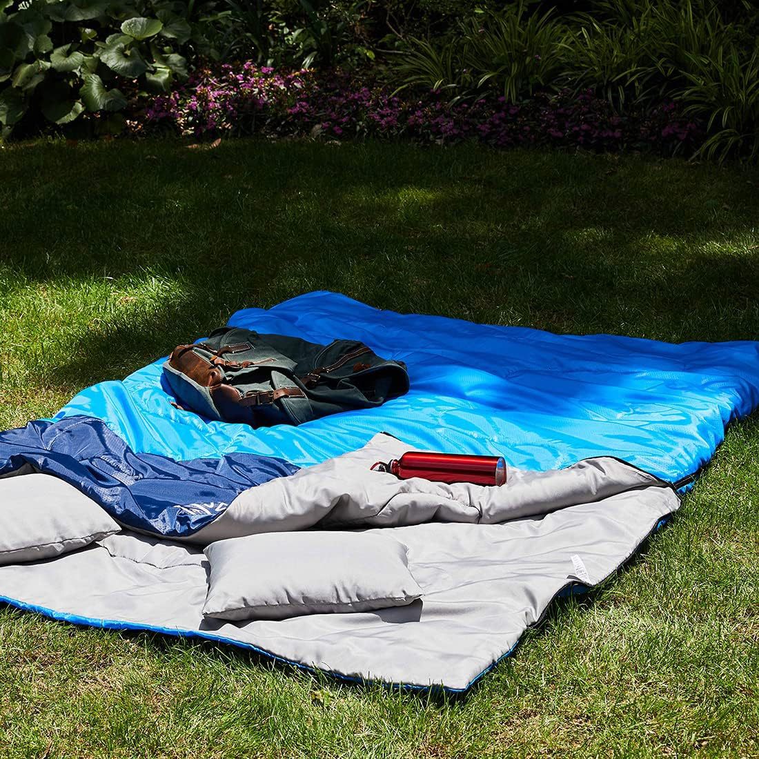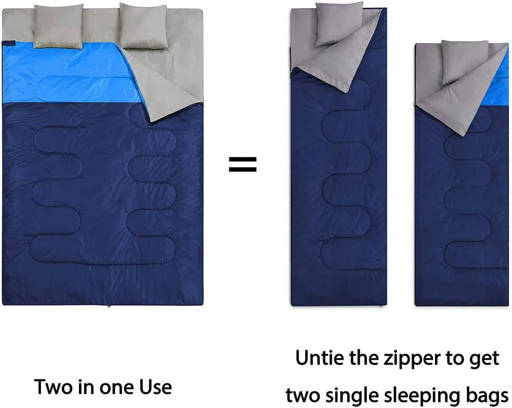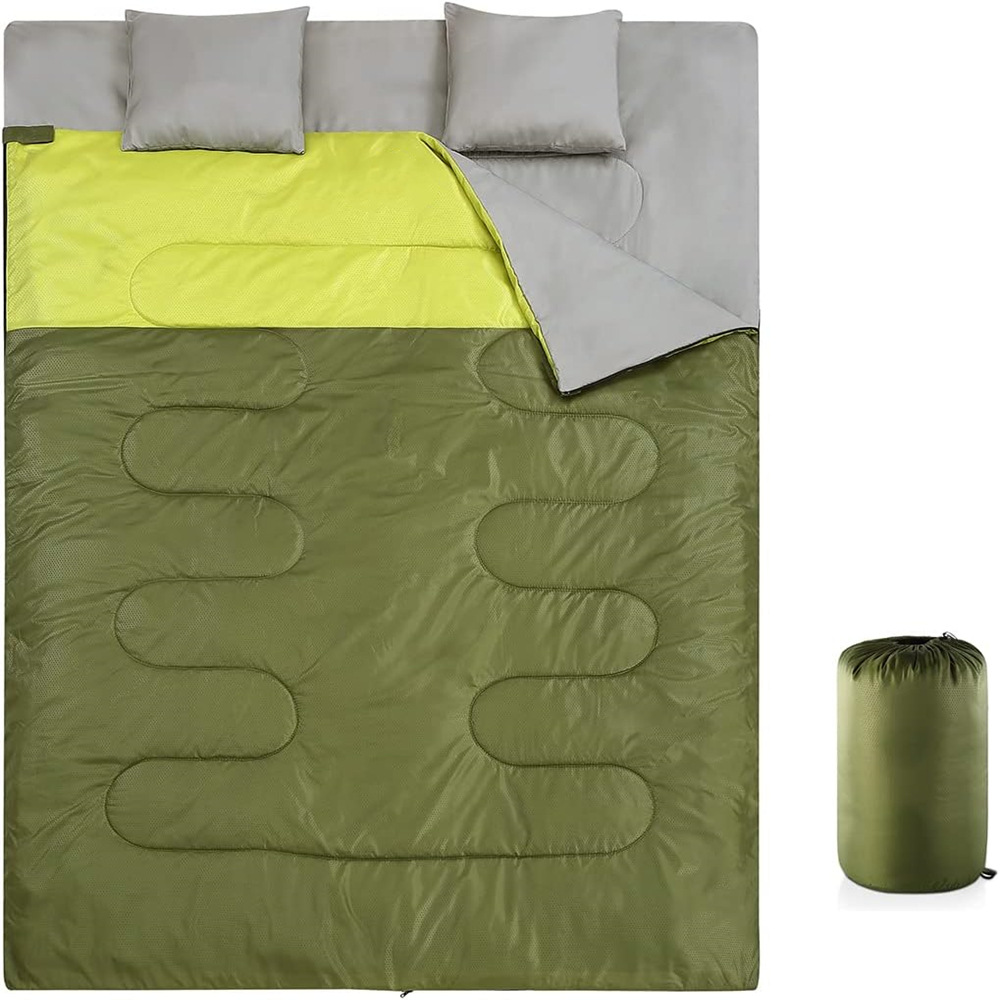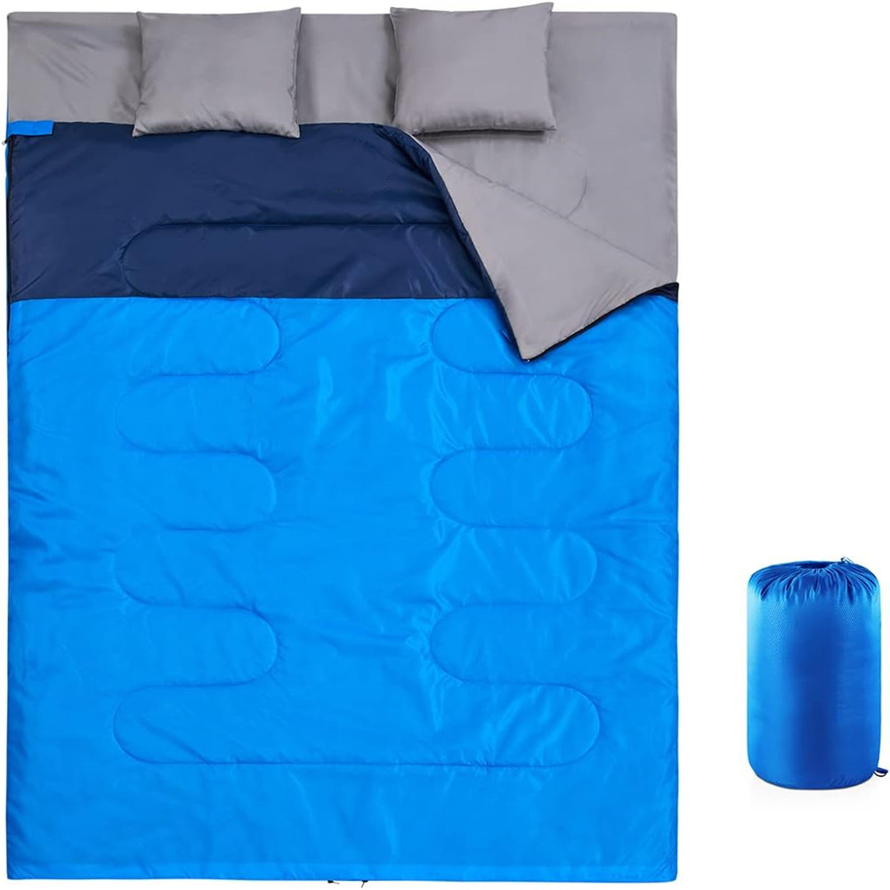 아마존 야외 더블 커플 두꺼운 캠핑 침낭 베개는 분할 수 있고 접합 방수 고정 할 수 있습니다