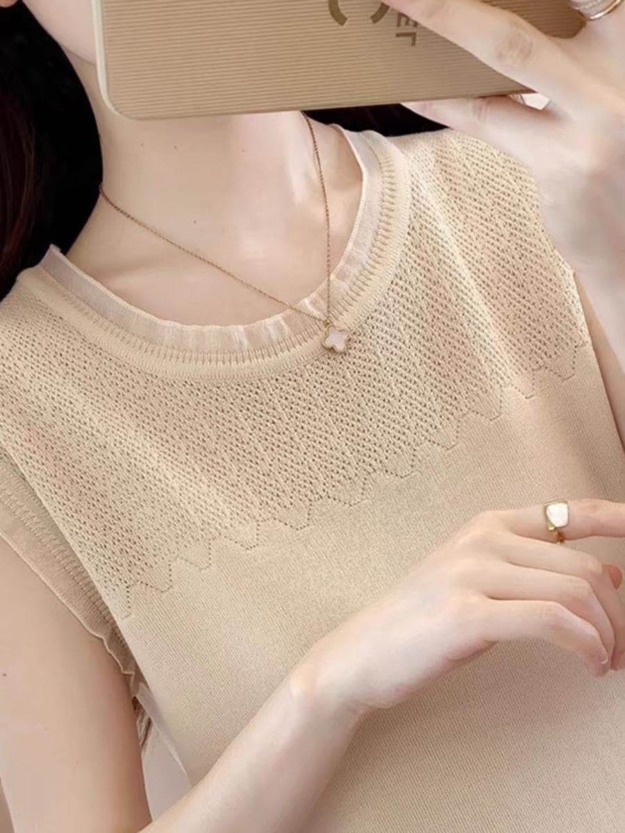 화이트 니트 캐미솔 여성용 2026 봄 신상 스타일, 슈트 안에 입는 레이스 아웃웨어 민소매 베이스 레이어 탑