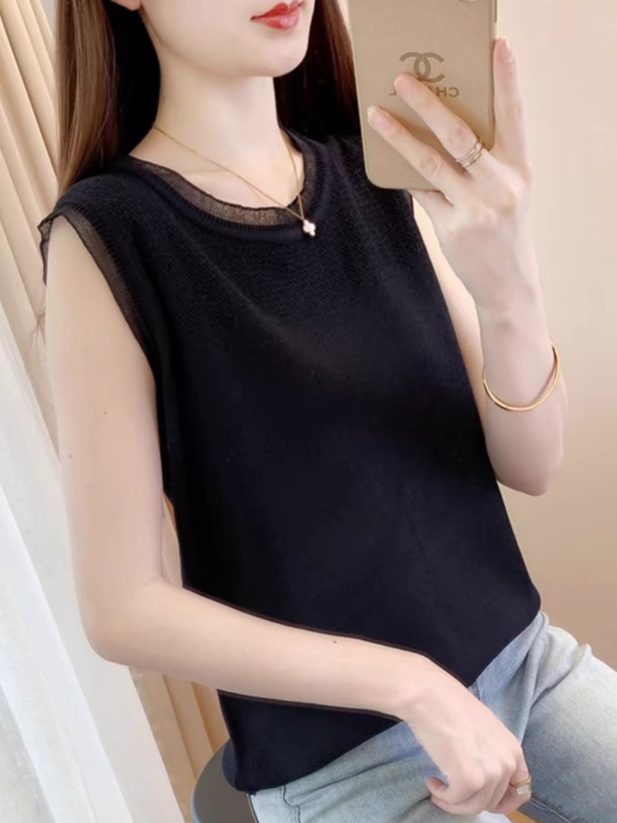 화이트 니트 캐미솔 여성용 2026 봄 신상 스타일, 슈트 안에 입는 레이스 아웃웨어 민소매 베이스 레이어 탑스토어 가기