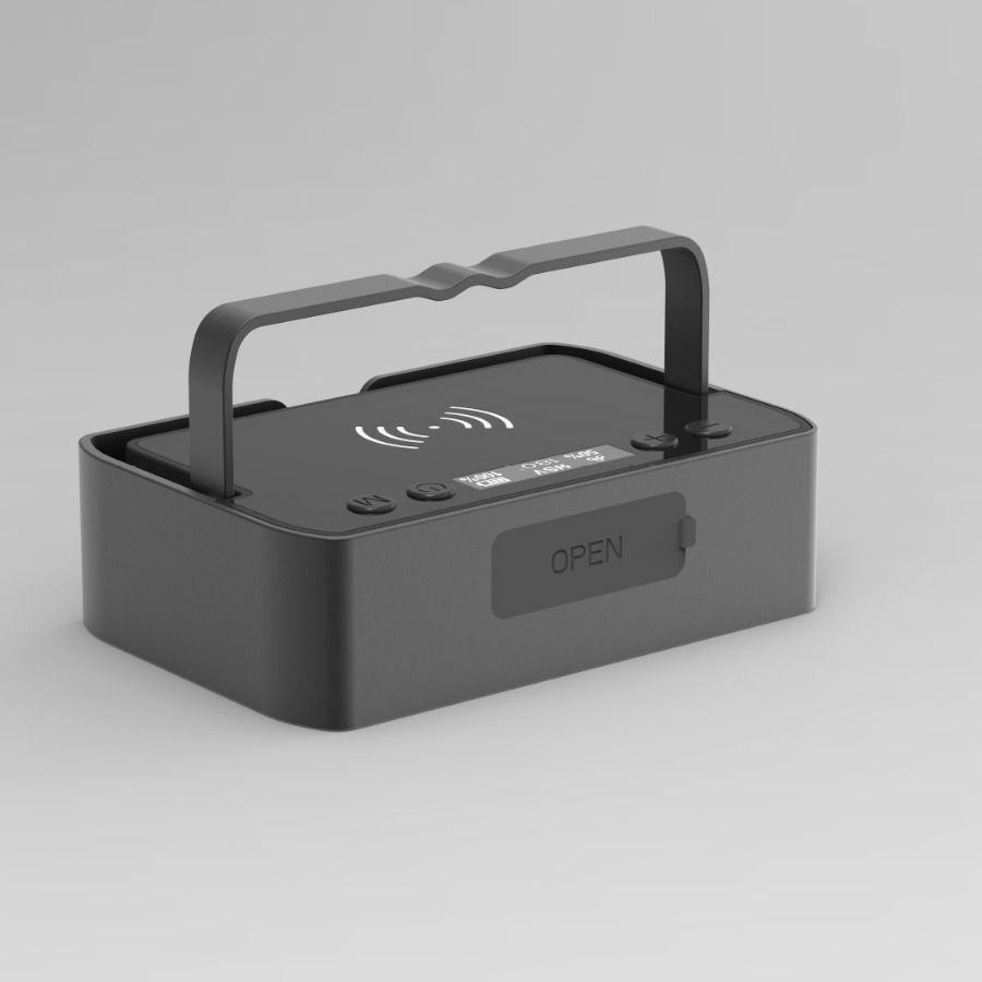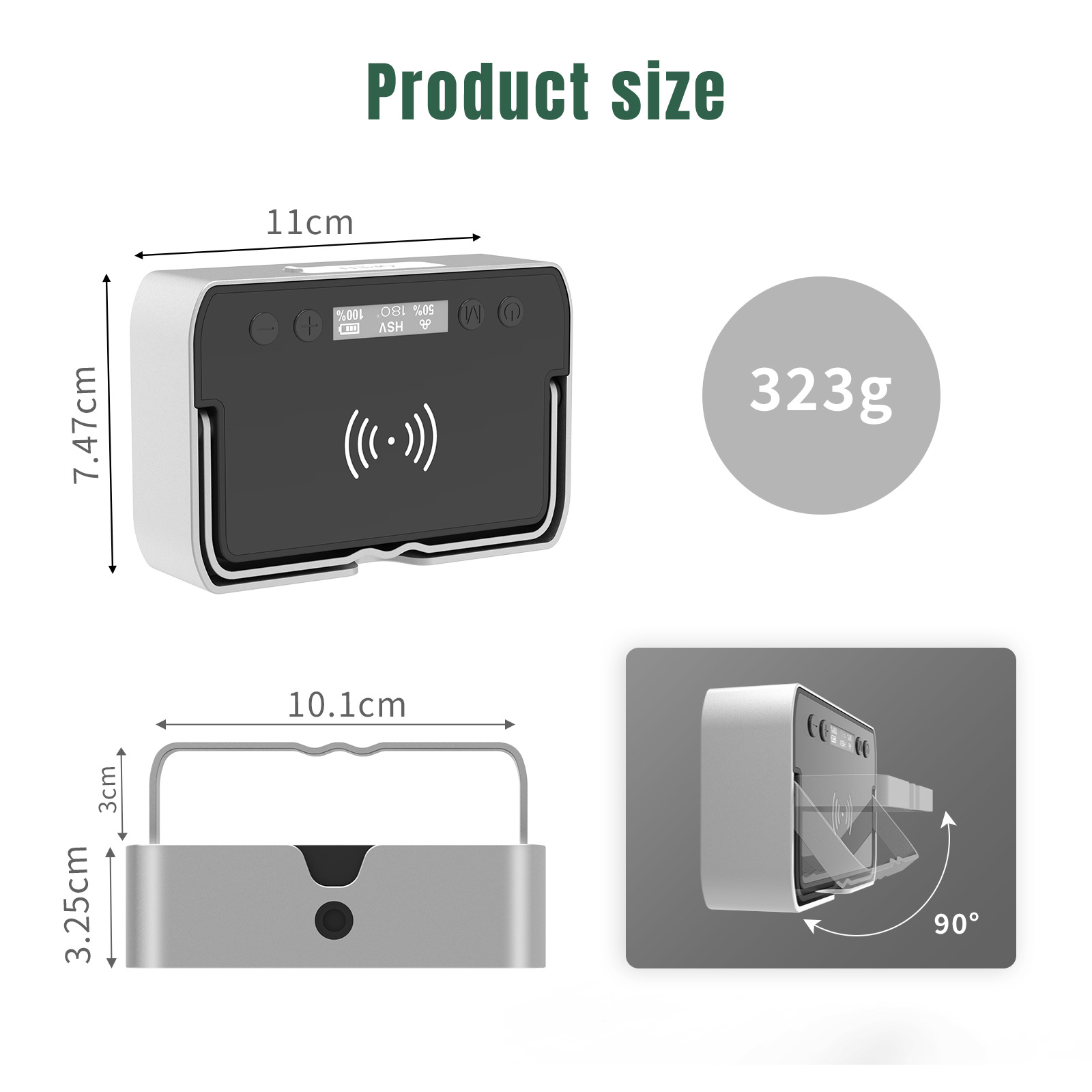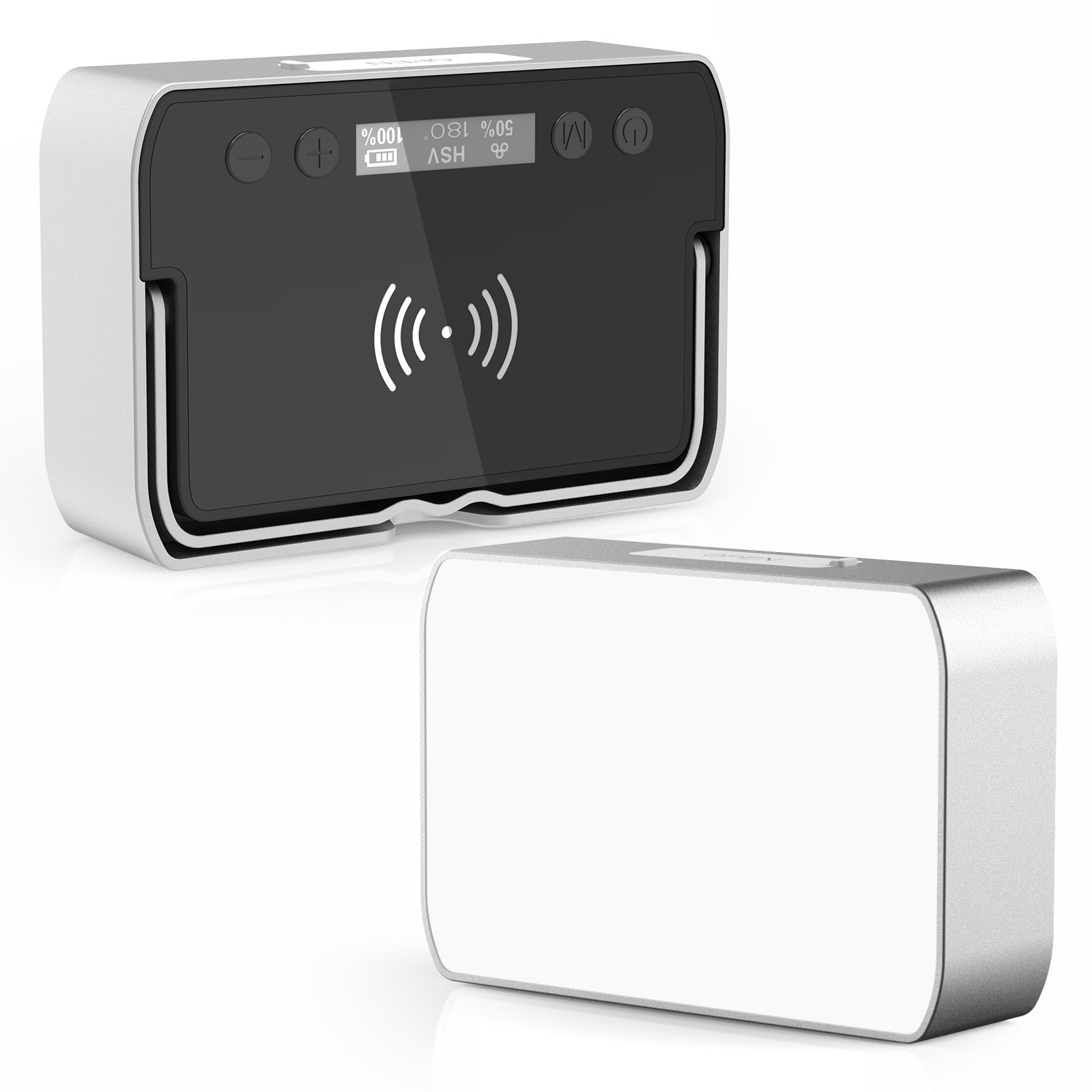 卖点 1.无线充电功能; 2.触摸按键调节; 3.无级调节; 4.流明:1000流明(); 5.电池容量:10000mah 规格 材质:锌合金+PC