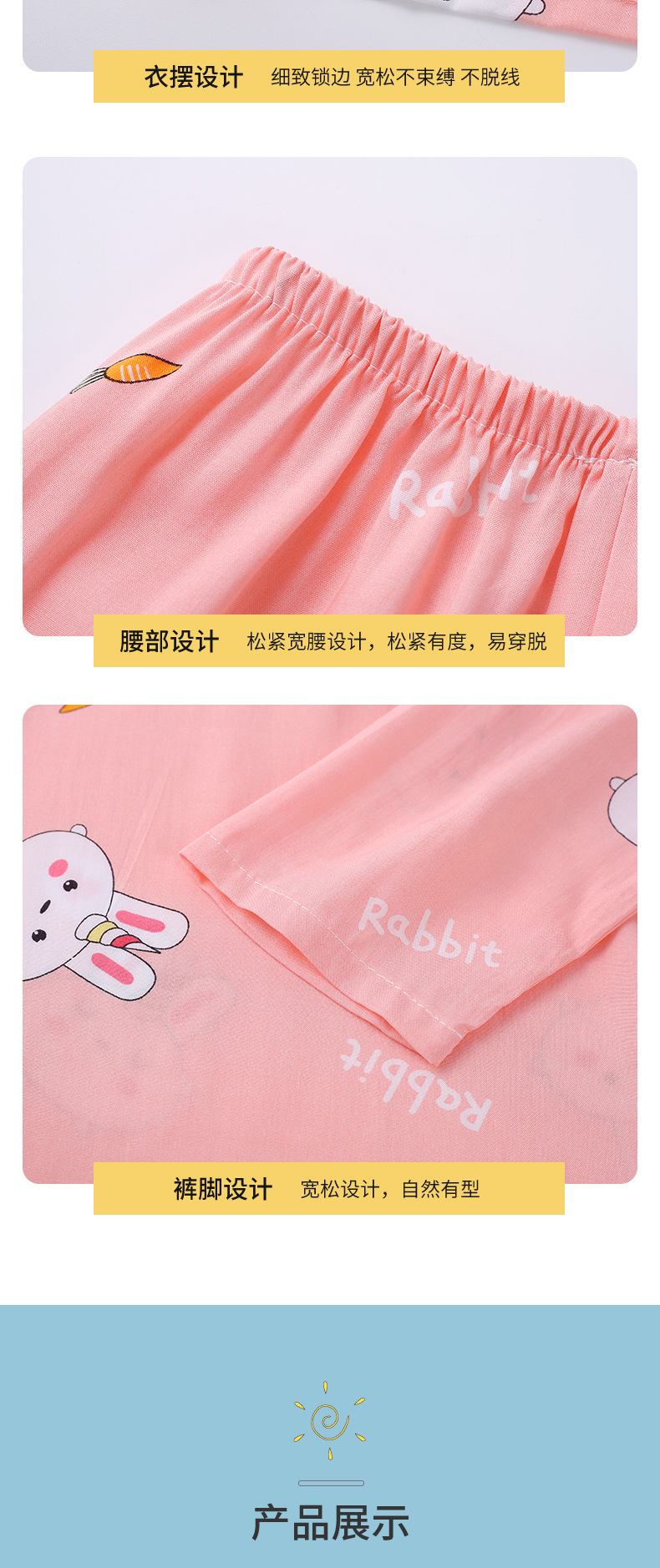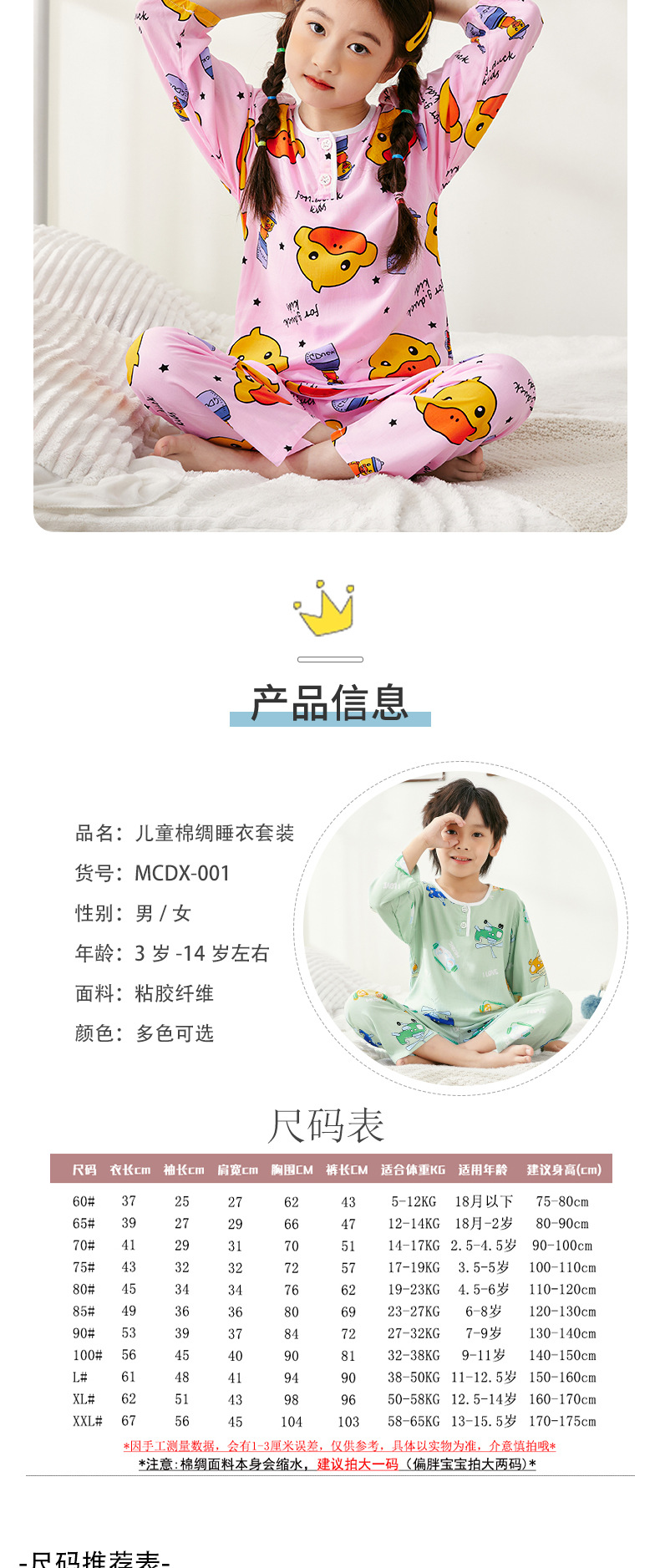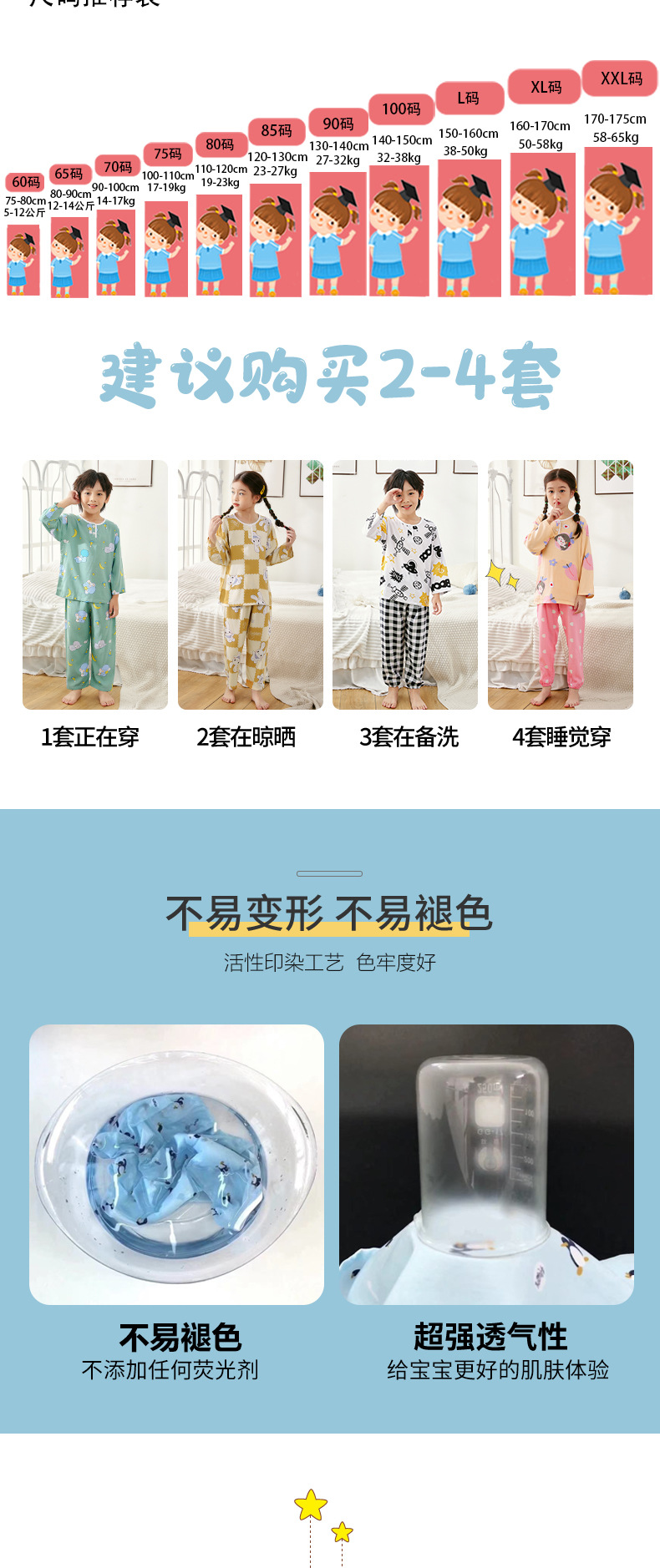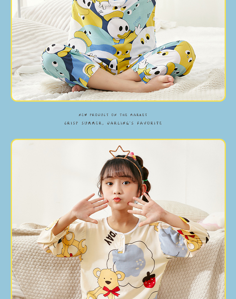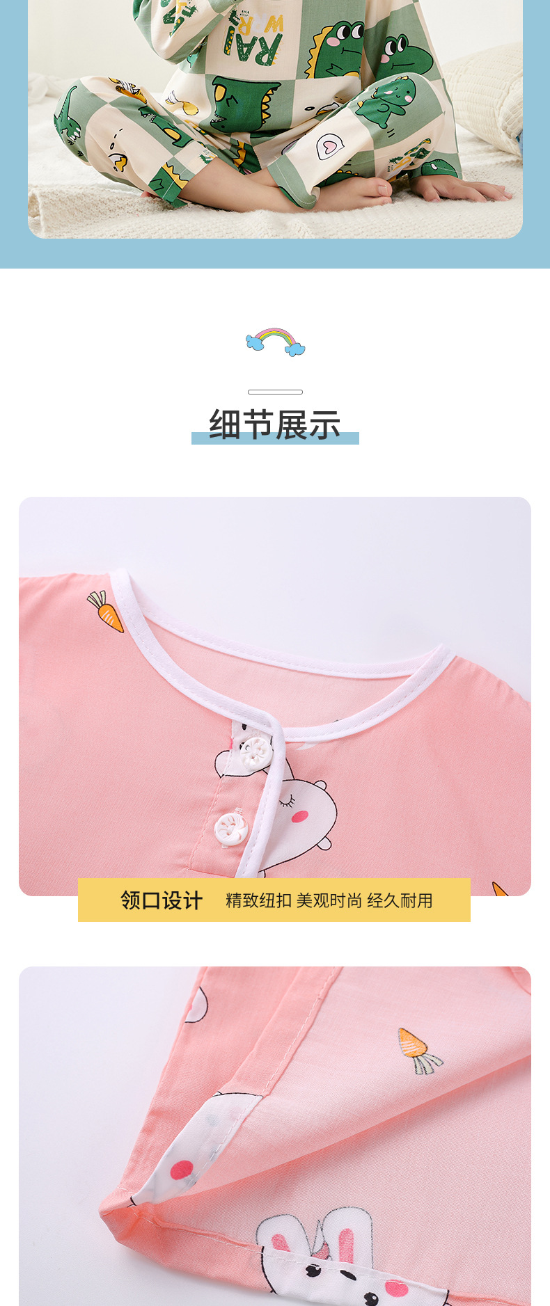 어린이 잠옷, 여름용 남아용 얇은 면 실크 긴팔 세트, 여아용 면 실크 중대형 아동용 인조면 홈웨어스토어 가기