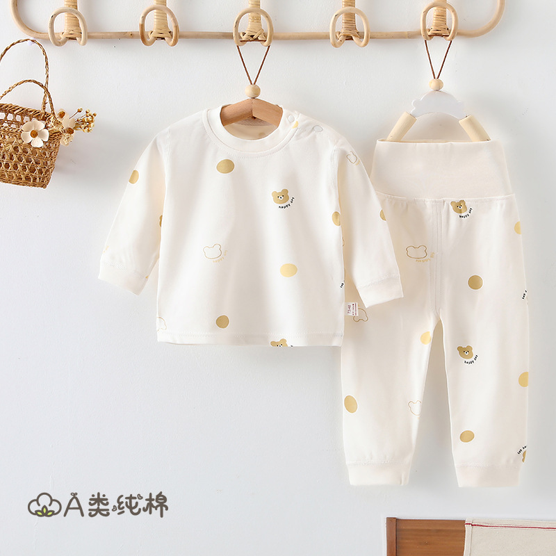 【아기 하이웨이스트 세트】봄, 가을 A급 순면 유아용 분리형 세트 남아, 여아 아기 홈웨어 2종 세트