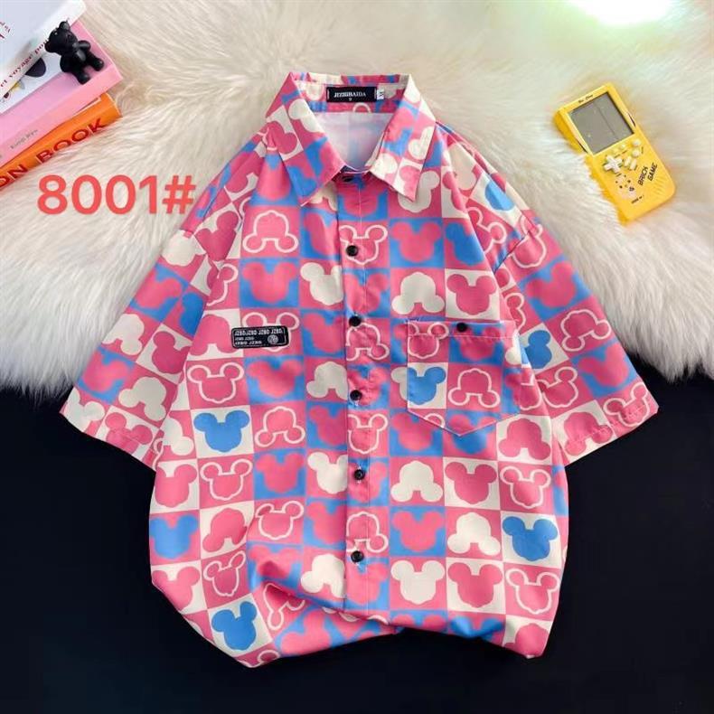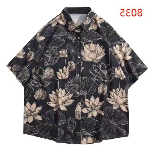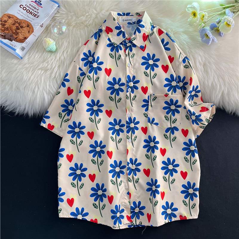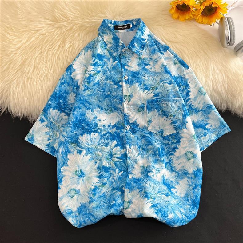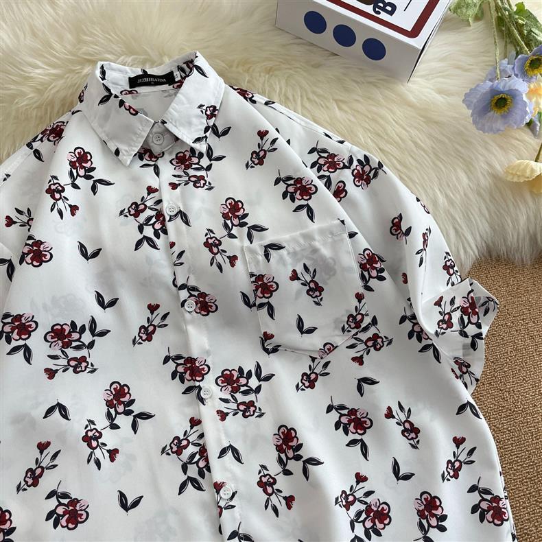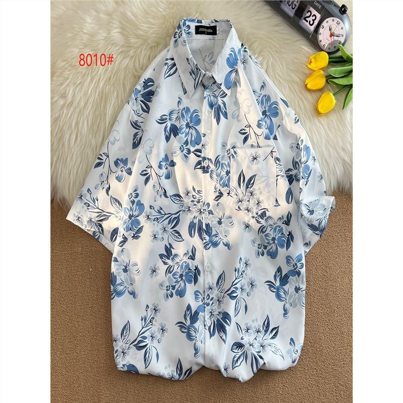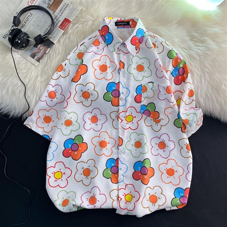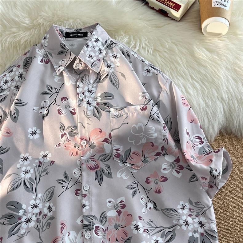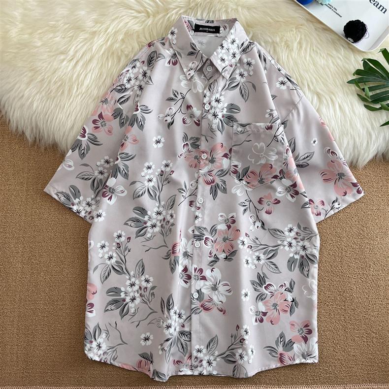 홍콩 스타일 플로럴 셔츠 짧은 소매 남성 여름 빈티지 프린트 홍콩 스타일 플로럴 셔츠 느슨한 얇은 탑