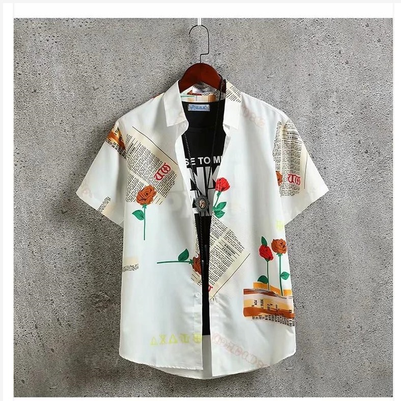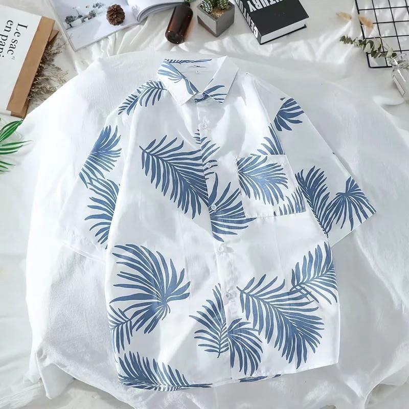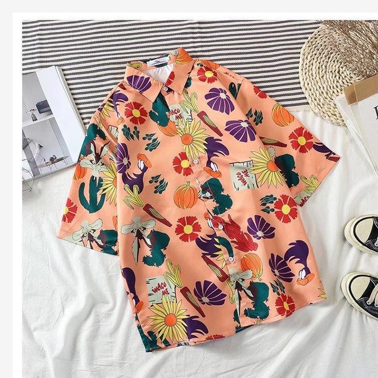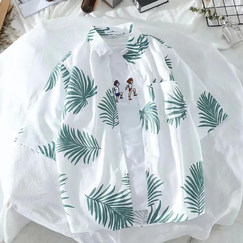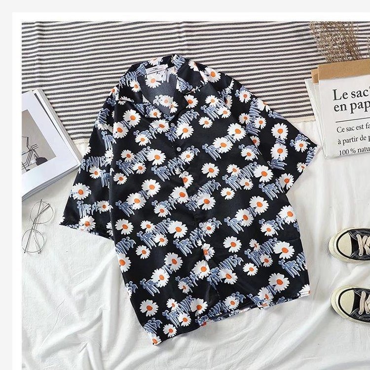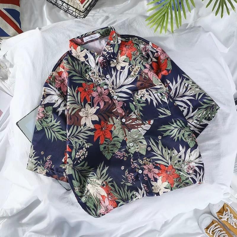 새로운 꽃무늬 셔츠 반팔 남성용 루즈한 학생 트렌디 꽃무늬 셔츠 커플 비치 재킷 얇은 하와이 여름스토어 가기
