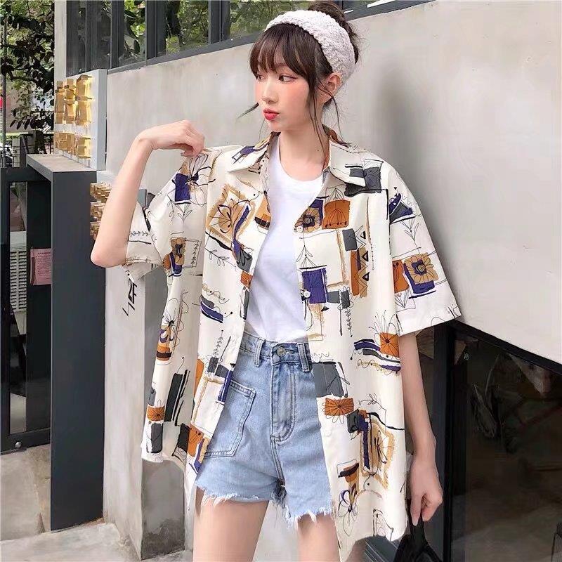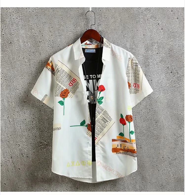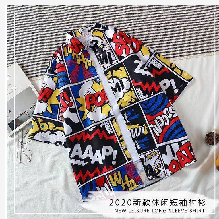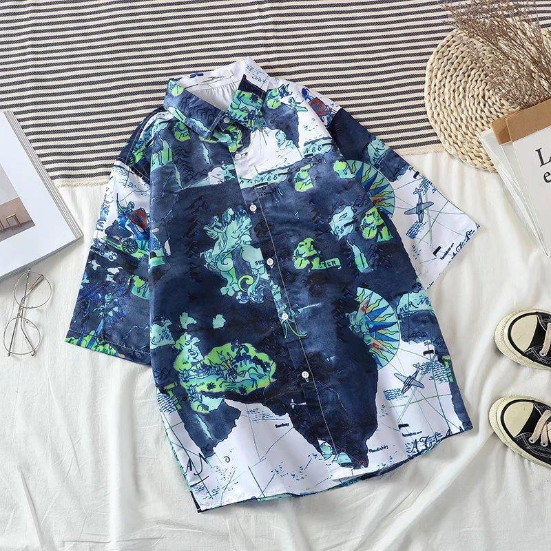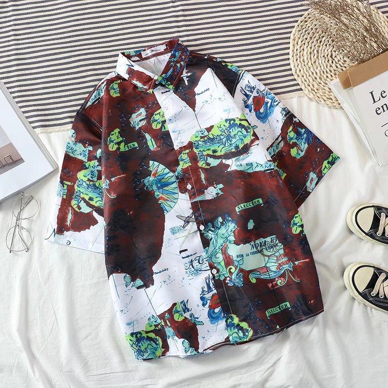 새로운 꽃무늬 셔츠 반팔 남성용 루즈한 학생 트렌디 꽃무늬 셔츠 커플 비치 재킷 얇은 하와이 여름스토어 가기