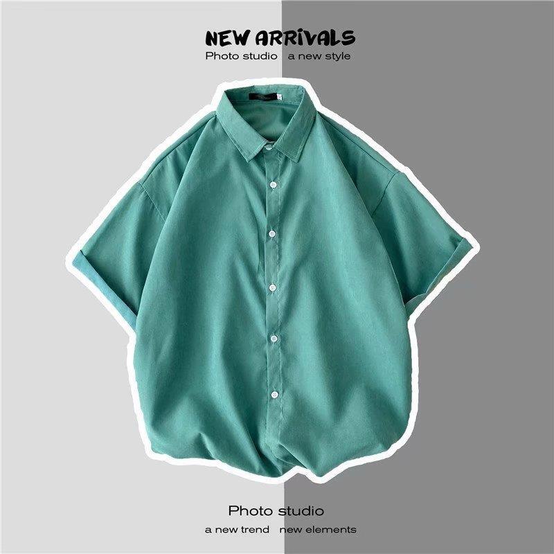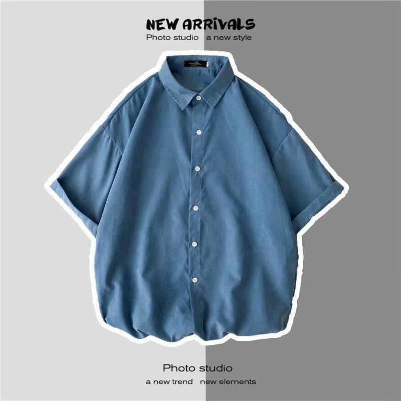 여름 얇은 반팔 셔츠 남성 디자인 감각 틈새 셔츠 홍콩 스타일 단색 루안 잘 생긴 캐주얼 재킷스토어 가기