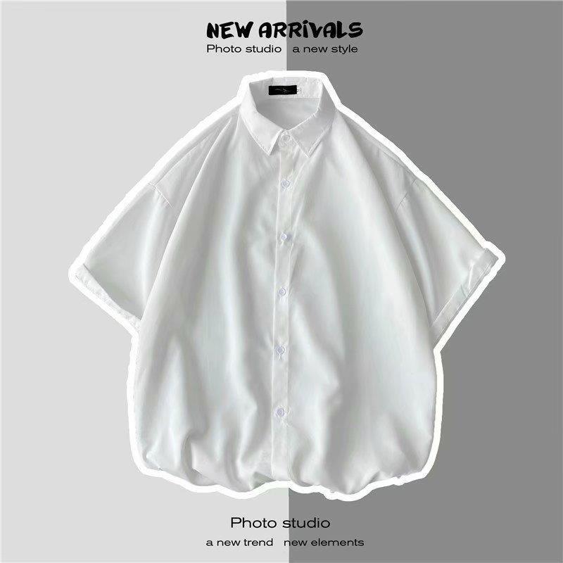 여름 얇은 반팔 셔츠 남성 디자인 감각 틈새 셔츠 홍콩 스타일 단색 루안 잘 생긴 캐주얼 재킷