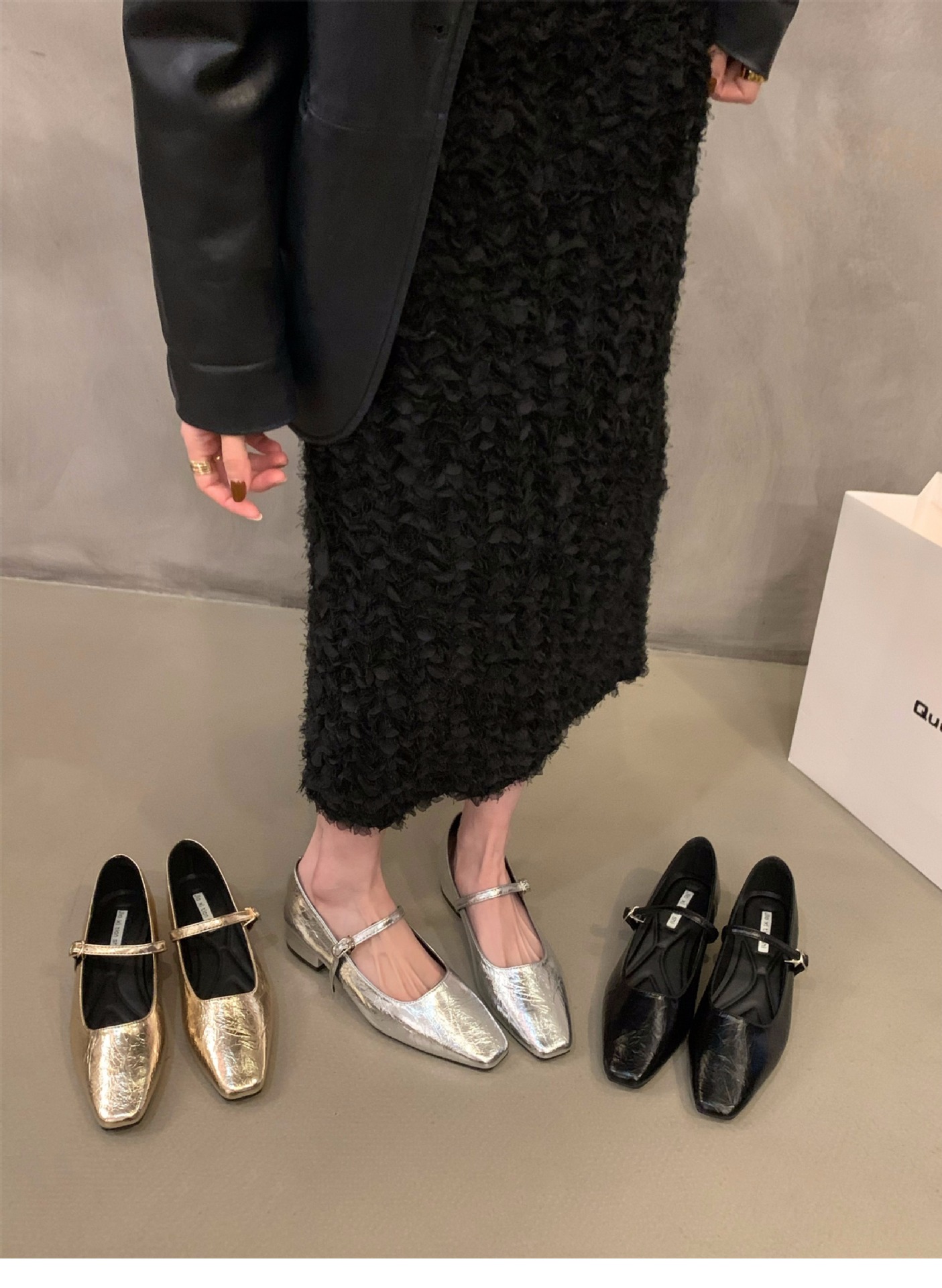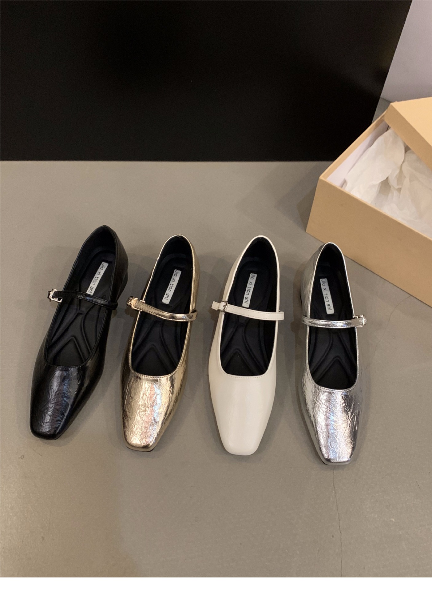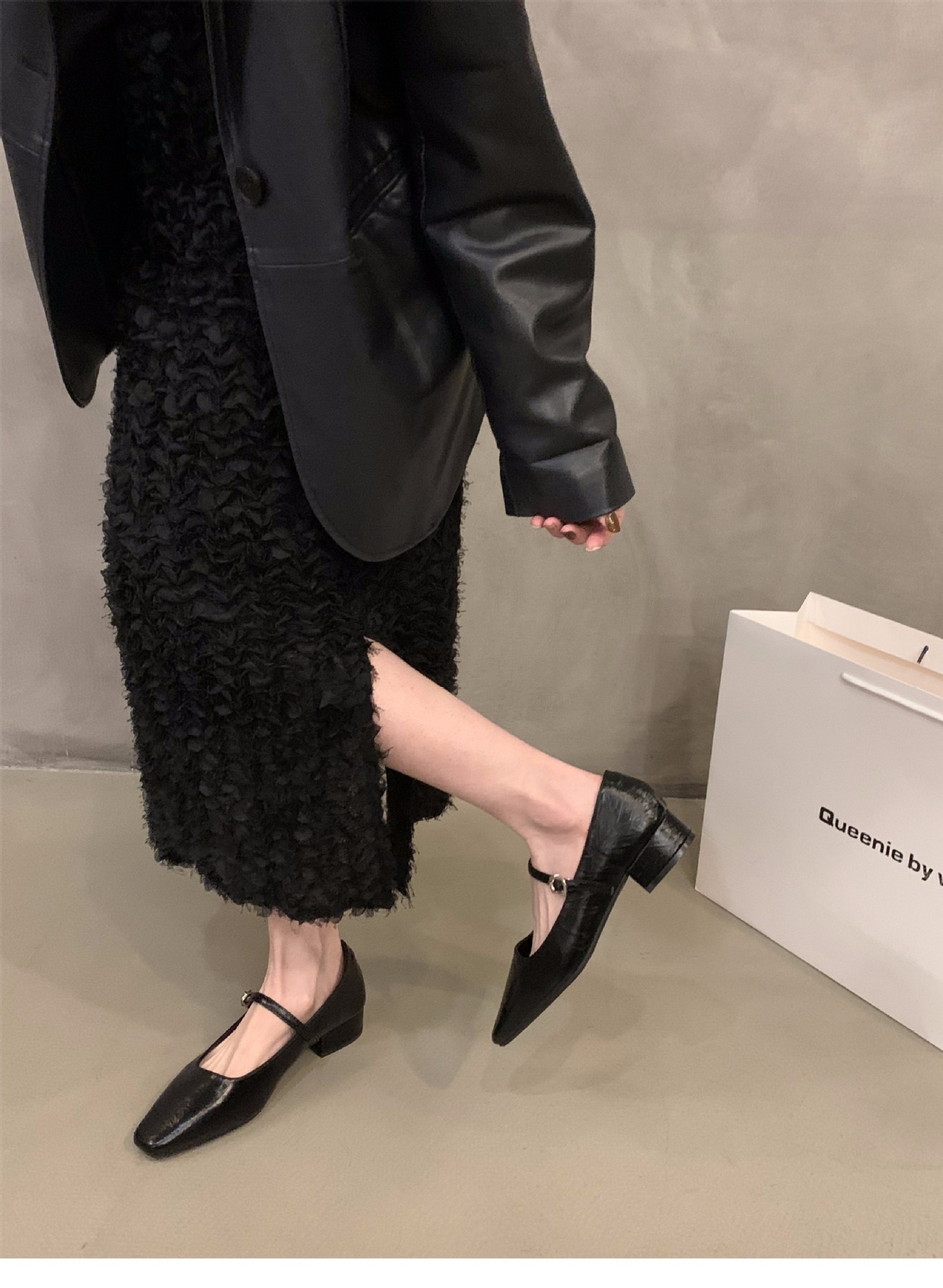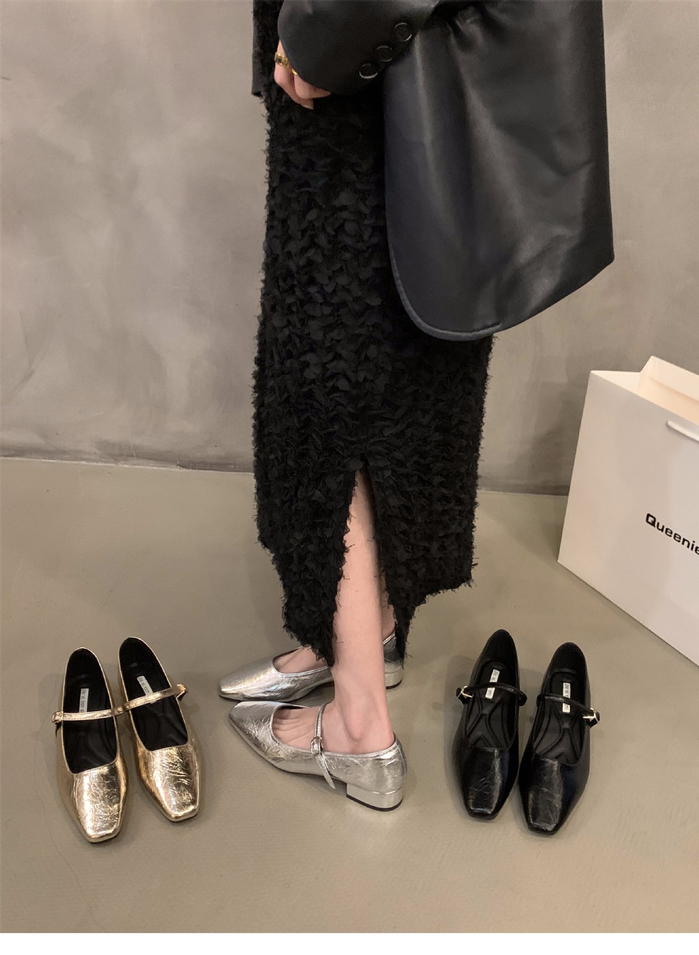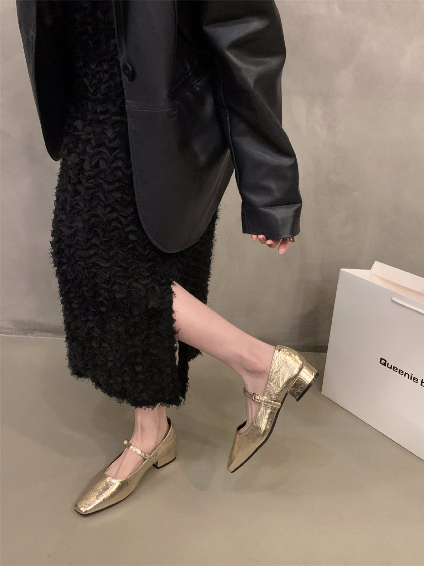 두꺼운 뒤꿈치 실버 메리 제인 신발 여성 신발 2025 새로운 봄, 가을 광장 발가락 프랑스 봄 스커트 이브닝 신발스토어 가기