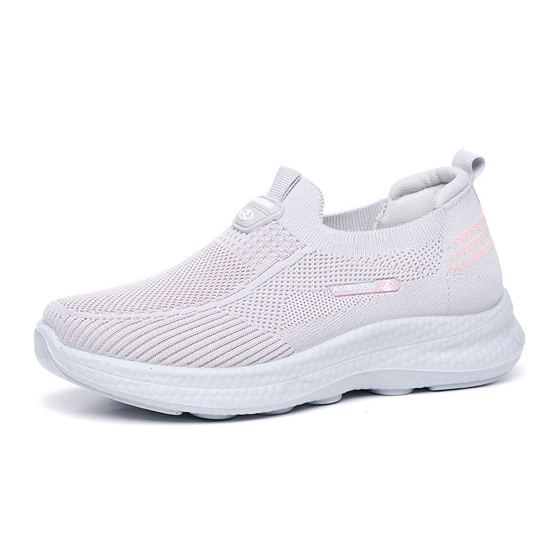 봄 새로운 도착 캐주얼 패션 플라이 니트 신발 여성의 편안한 통기성 소프트 솔 유행 운동화 중년 남성 신발스토어 가기
