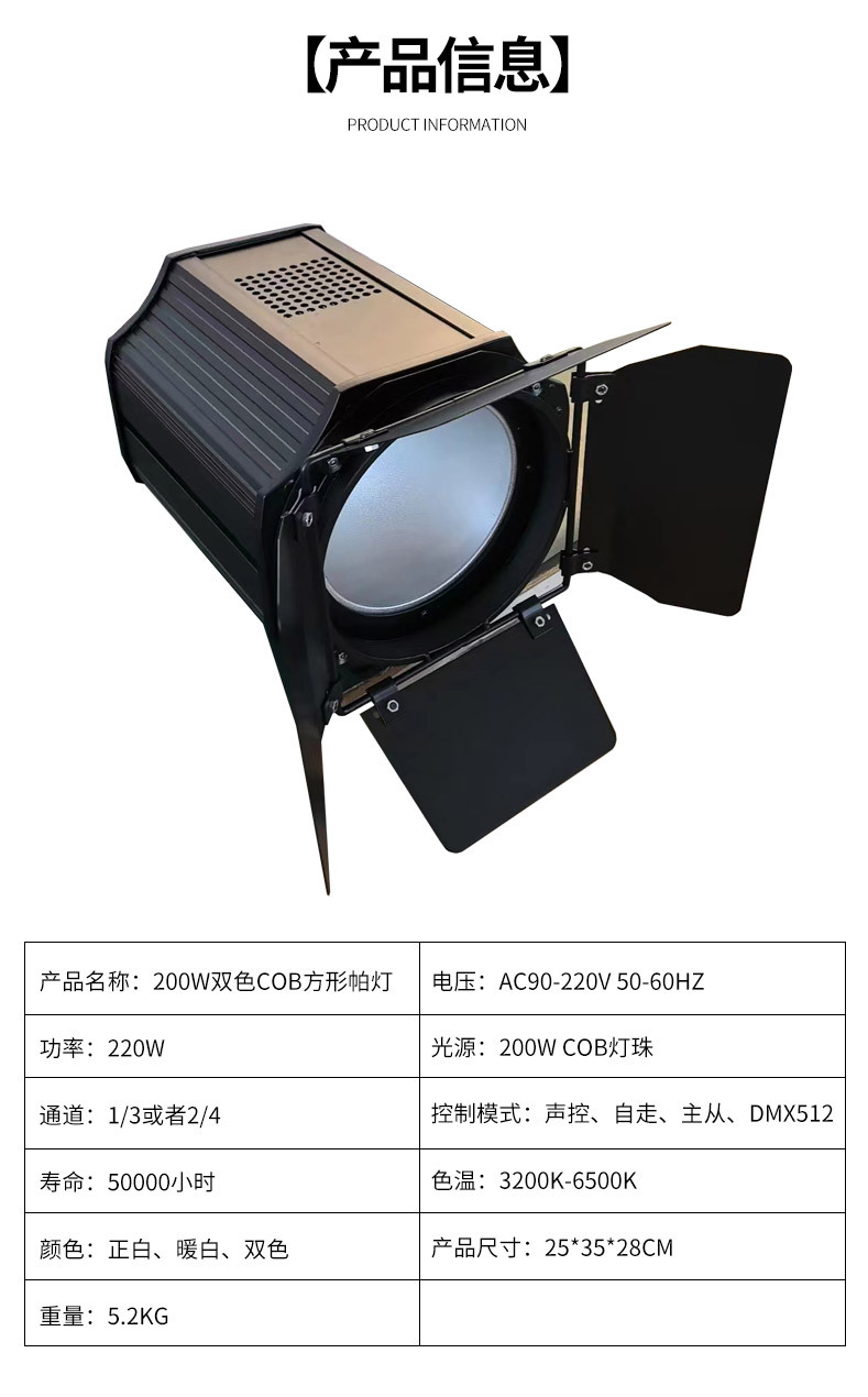 • 200W 더블 컬러 COB 스퀘어 파 라이트