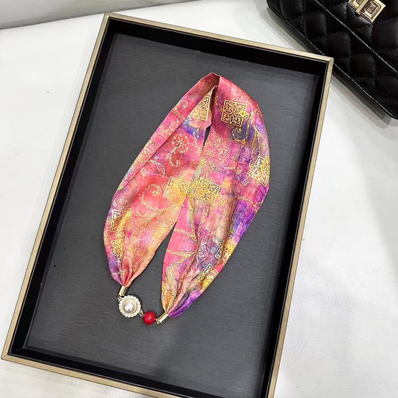 실크 스카프 새로운 진주 마그네틱 버클 하이 엔드 샹윤 원사 꽃 우아한 스카프 손목 올 매치 헤어 벨트 게으른 스카프스토어 가기