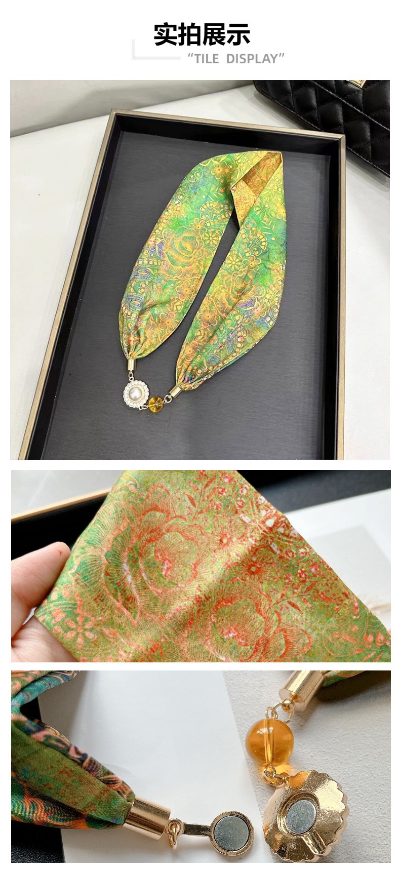 실크 스카프 새로운 진주 마그네틱 버클 하이 엔드 샹윤 원사 꽃 우아한 스카프 손목 올 매치 헤어 벨트 게으른 스카프