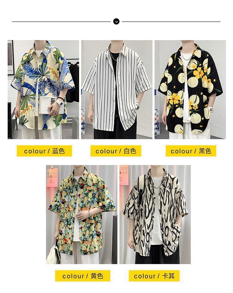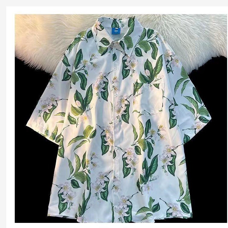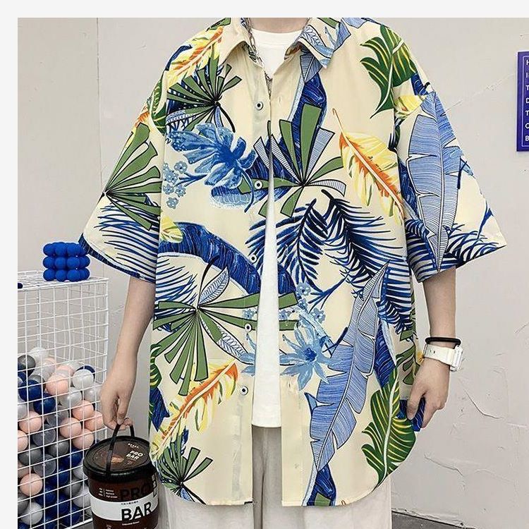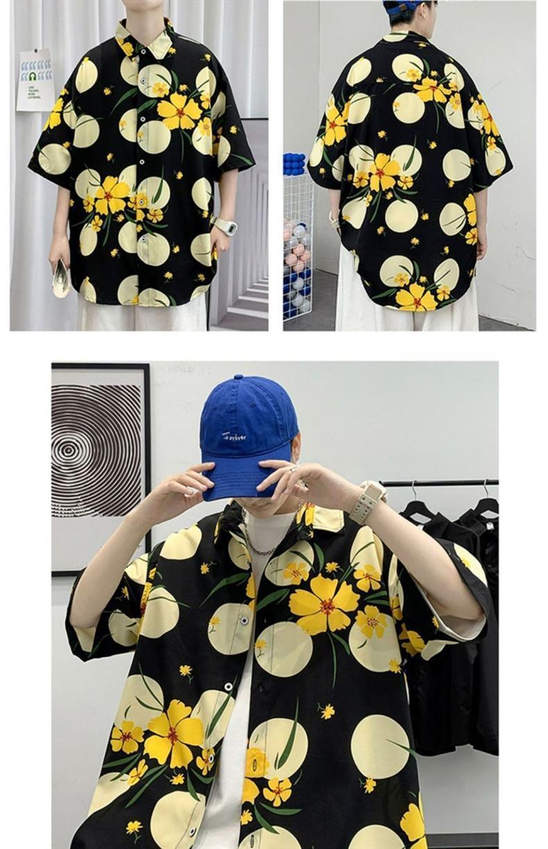 하와이안 셔츠 반팔 남성 여름 패션 브랜드 홍콩 스타일 느슨한 커플 스트리트 힙합 비치 플라워 셔츠 패션스토어 가기