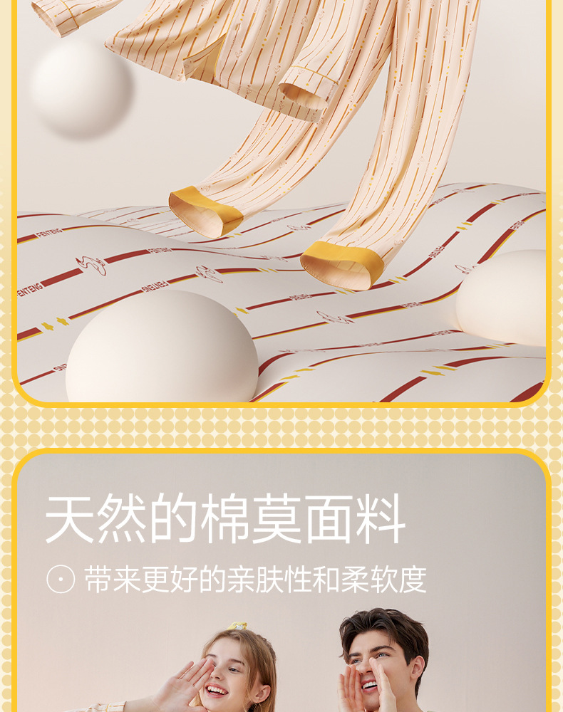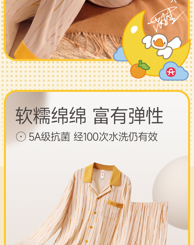 Finteng [팬 Xiaoxiao와 같은 스타일] 잠옷 여성 모달면 봄과 가을 커플 남성 항균 홈웨어 세트스토어 가기
