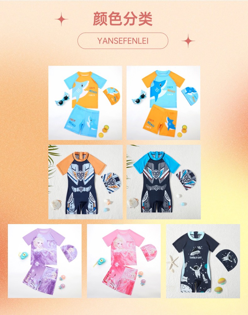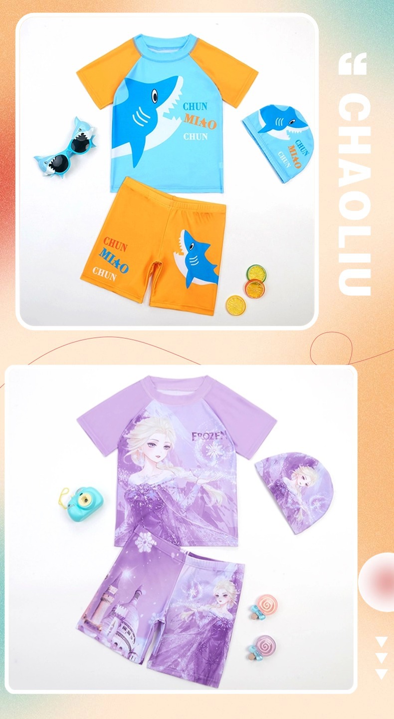 어린이 수영복 크로스보더 스플릿 3피스 세트 귀여운 만화 어린이 수영복 어린이 남성과 여성 아기 편안한 수영복스토어 가기