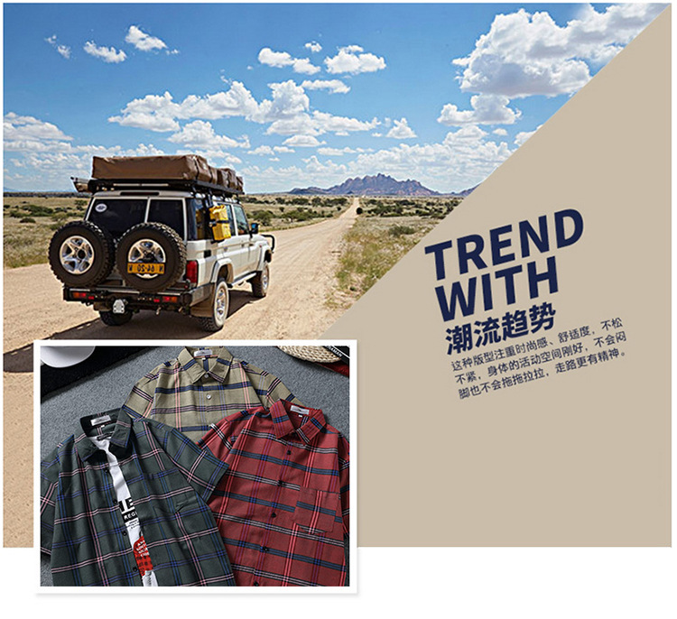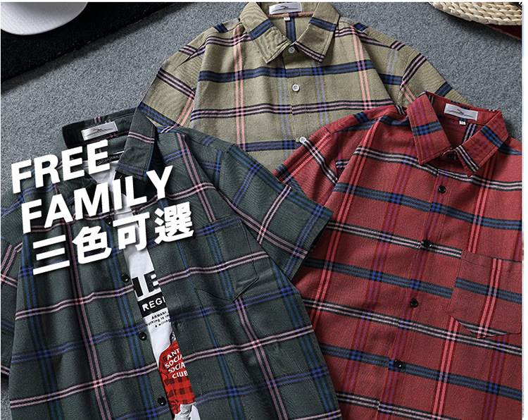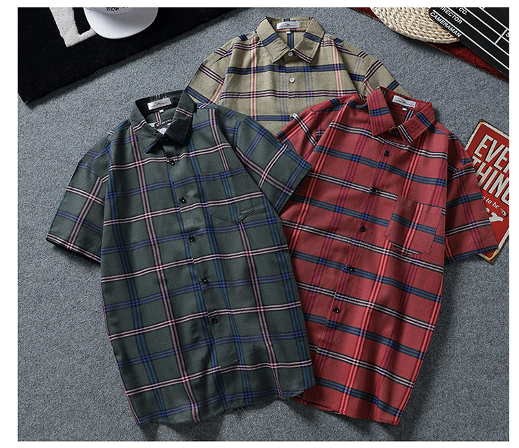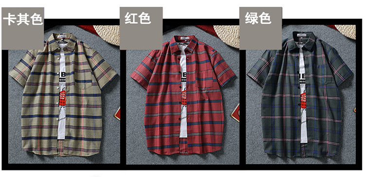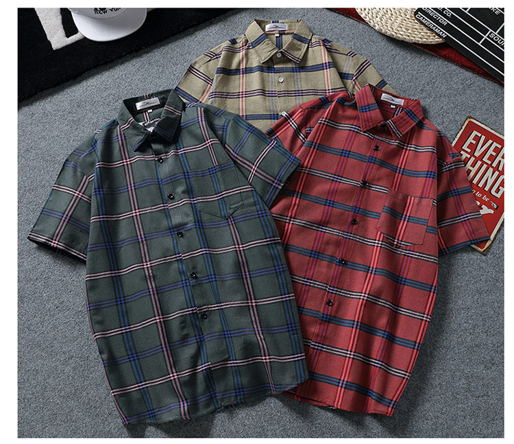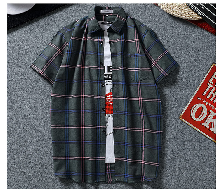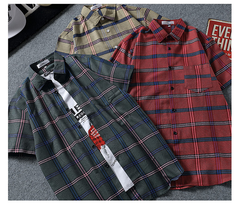 격자 무늬 셔츠 남성과 여성의 반팔 커플은 ulzzang Harajuku 스타일 학생 태양 보호 코트 인 슈퍼 인기 셔츠를 입습니다.스토어 가기