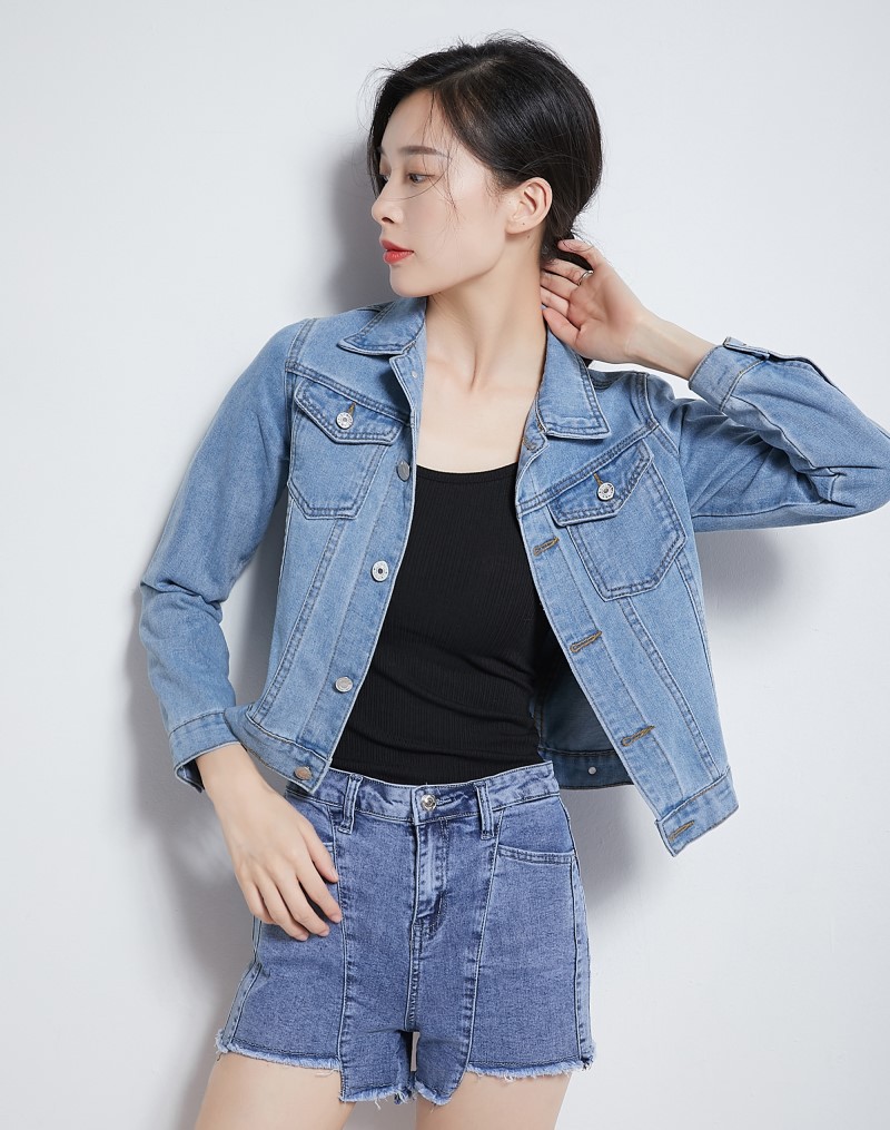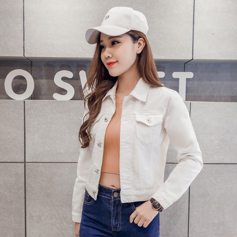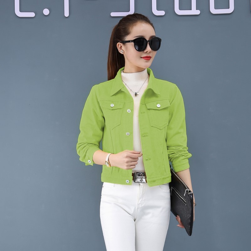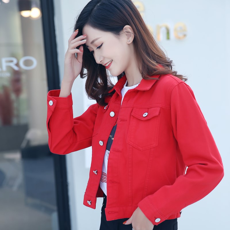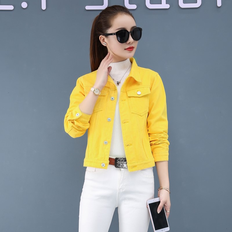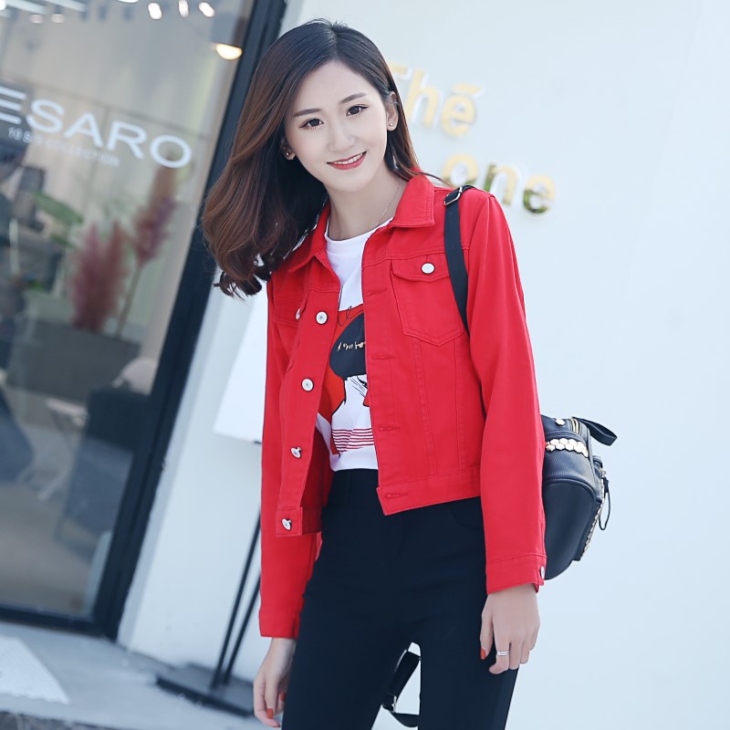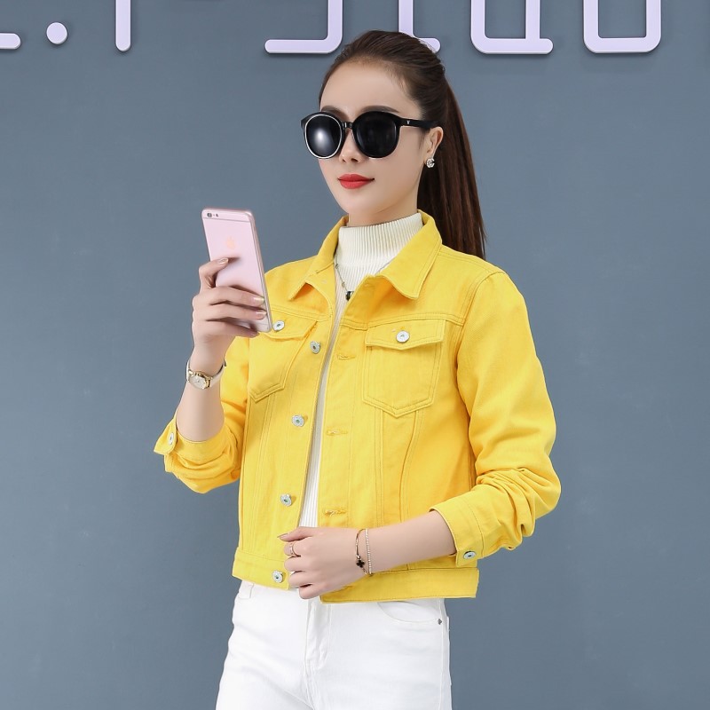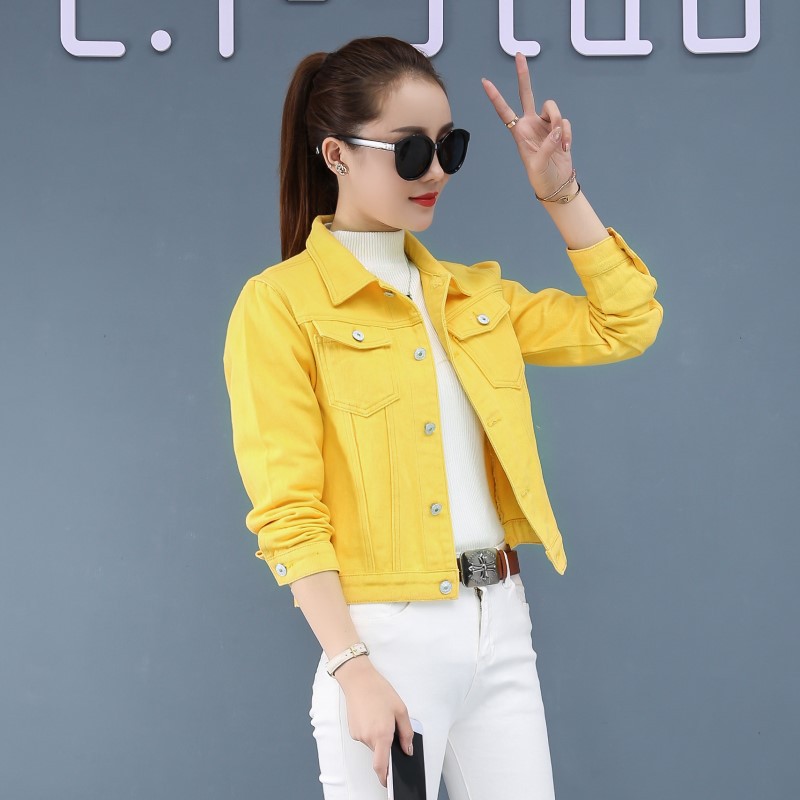 컬러풀한 데님 재킷 여성 인기 아이템 봄 가을 다용도 캠퍼스 스타일 숏 재킷 트렌디 브랜드 슬림핏 자켓 아우터스토어 가기