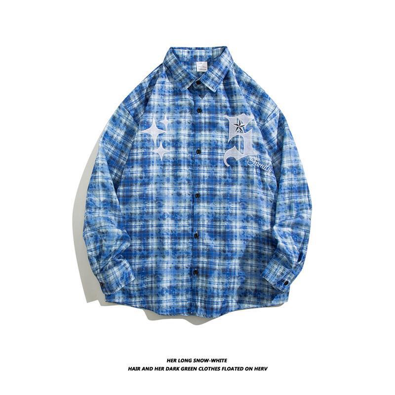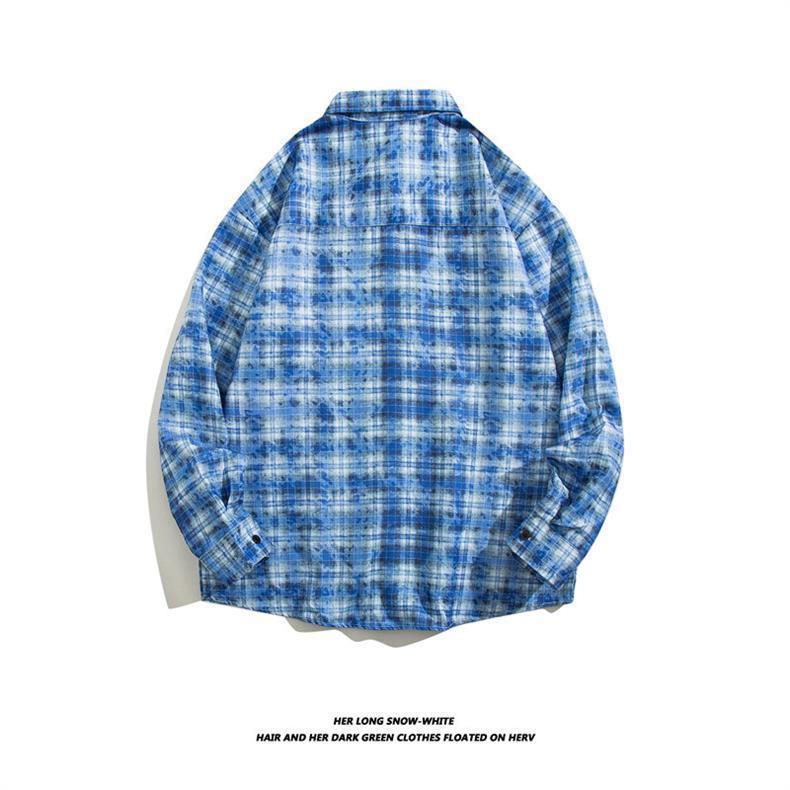 미국 거리 가을과 겨울 넥타이 염색 체크 무늬 셔츠 코트 남성용 고급 느슨한 겉옷 디자인 긴 소매 코트