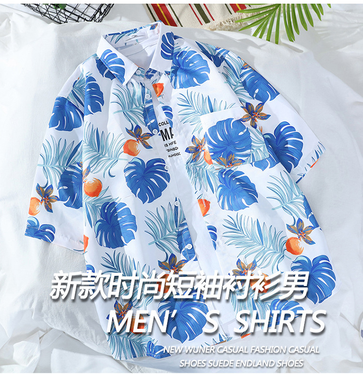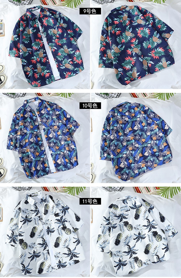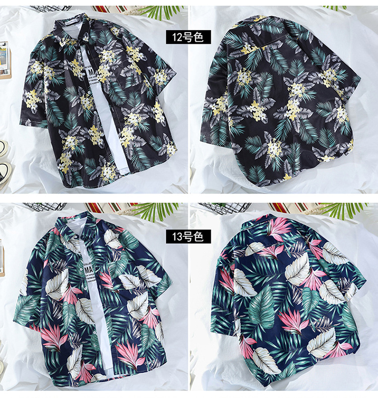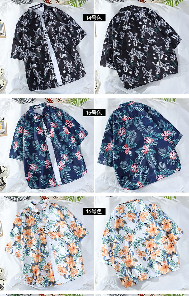 한국 복고풍 하와이 반팔 셔츠 남성과 여성 홍콩 스타일의 세련된 느슨한 커플의 해변 꽃 무늬 셔츠 패션스토어 가기