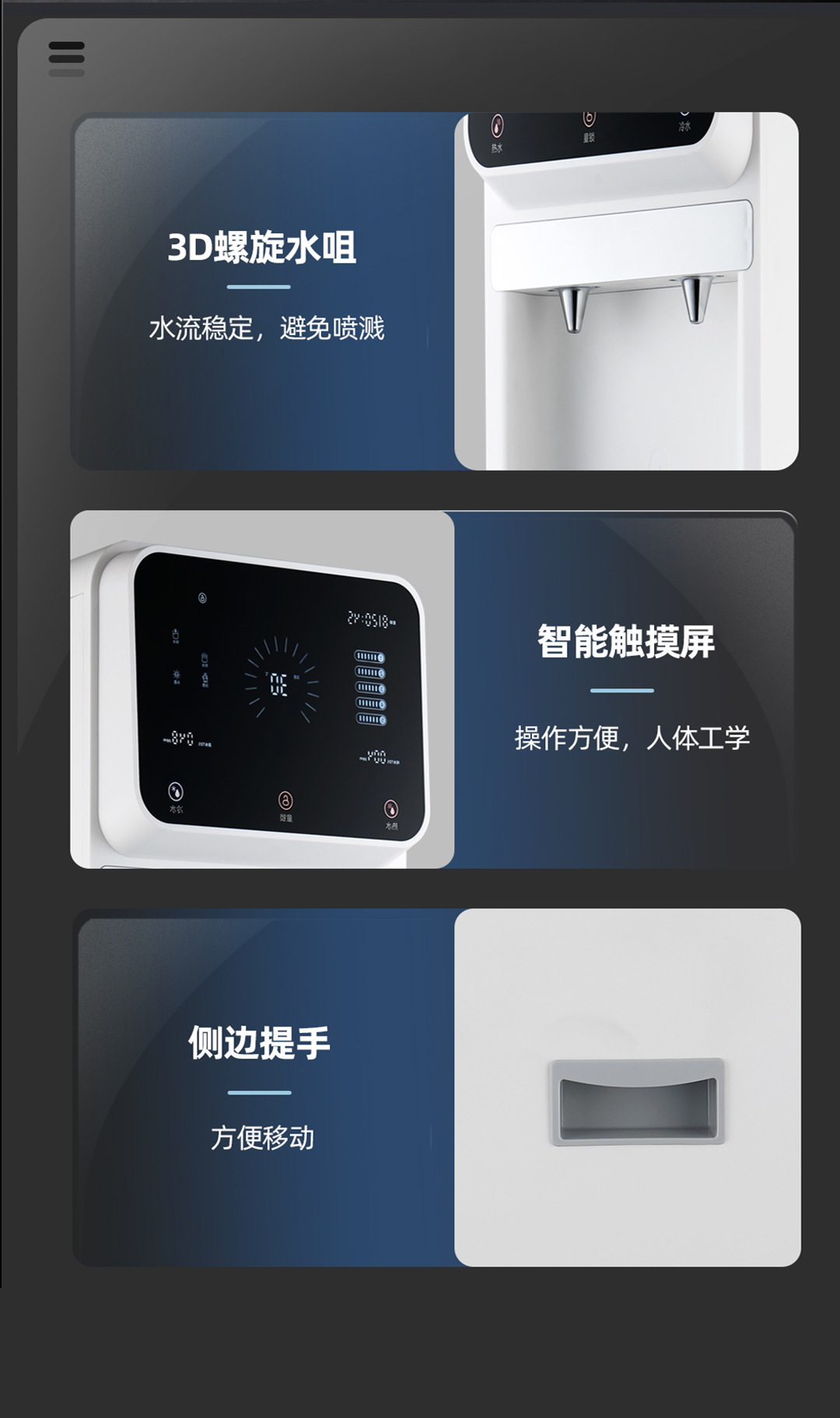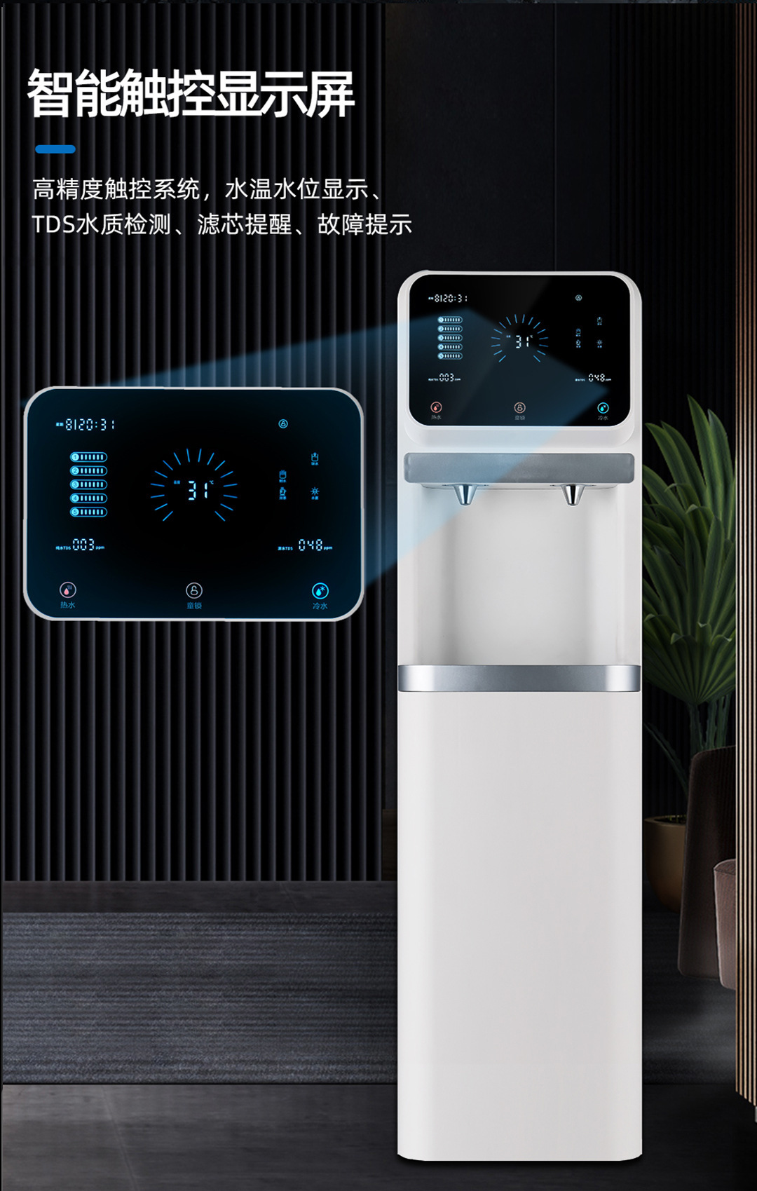 • 실내 온도 물 + 뜨거운 물 내장 RO 올인원 기계 (스마트 터치 스크린)