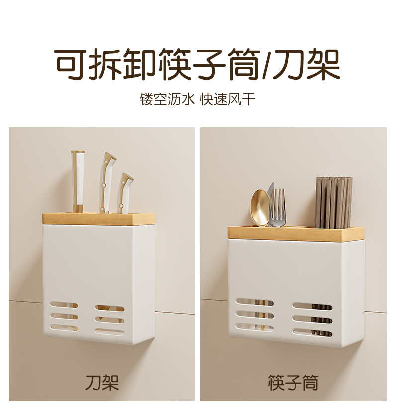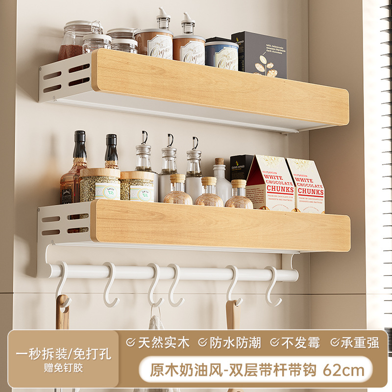 로그 스타일 주방 랙 조미료 랙 벽에 장착 된 펀치없는 다층 나이프 홀더 냄비 젓가락 숟가락 보관 랙