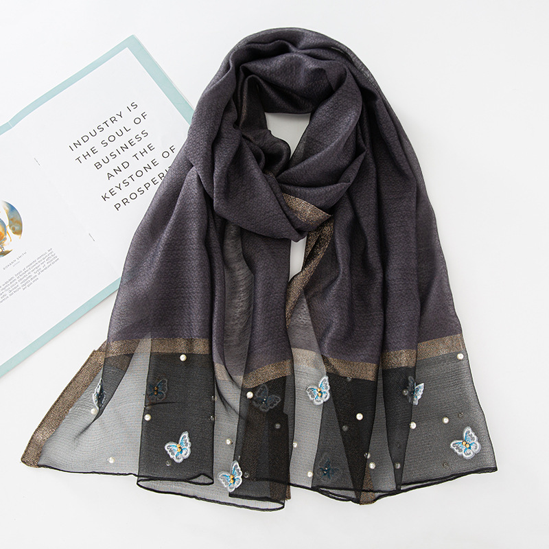 새로운 단색 스카프 여성 패션 인공 실크 스카프 긴 봄과 가을 인기있는 올 매치 실크 비치 타월 재고스토어 가기
