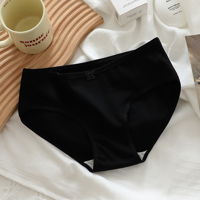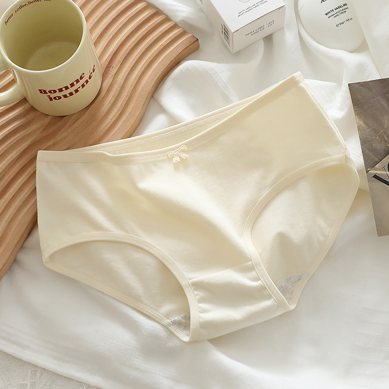 달콤한 소녀면 중간 허리 속옷 크림 단색면 가랑이 편안한 통기성 여성 삼각형 반바지 머리