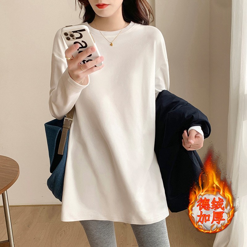 중간 길이의 벨벳 흰색 바닥 셔츠 여성 내복 가을과 겨울 기모 두꺼운 긴팔 티셔츠 스웨터 스택 탑 패션