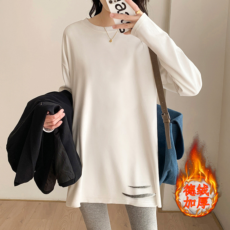 중간 길이의 벨벳 흰색 바닥 셔츠 여성 내복 가을과 겨울 기모 두꺼운 긴팔 티셔츠 스웨터 스택 탑 패션스토어 가기