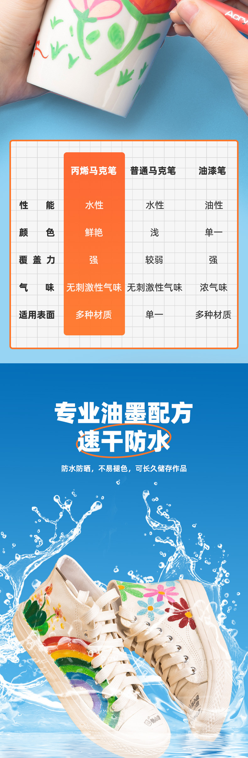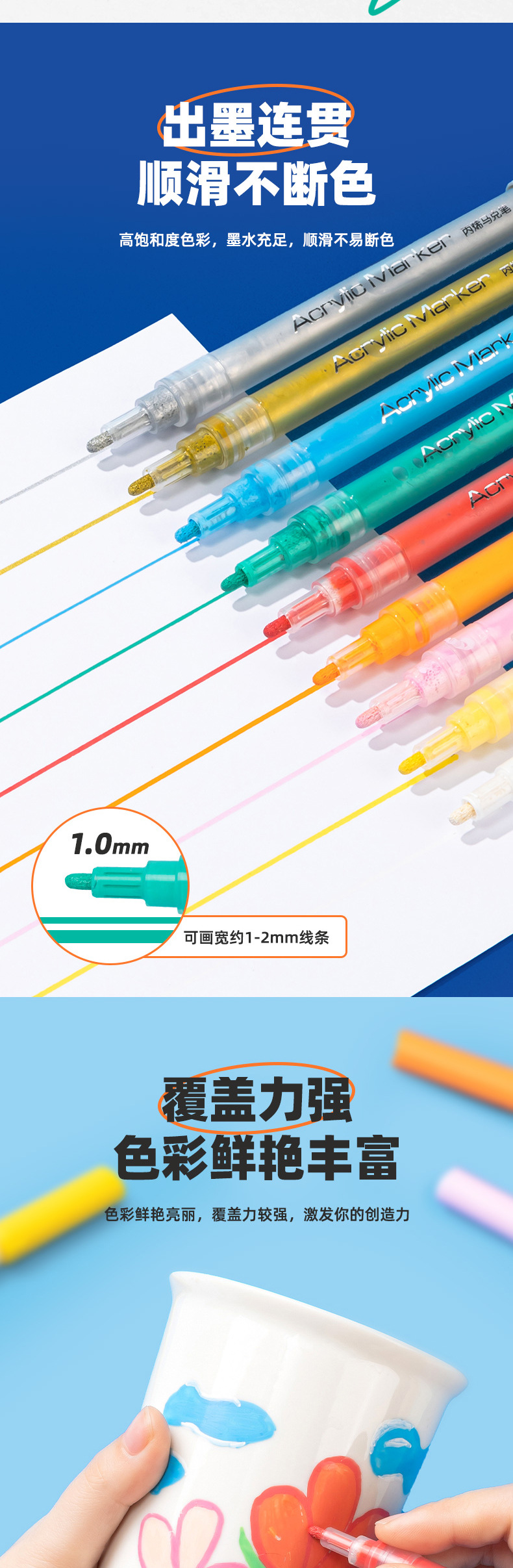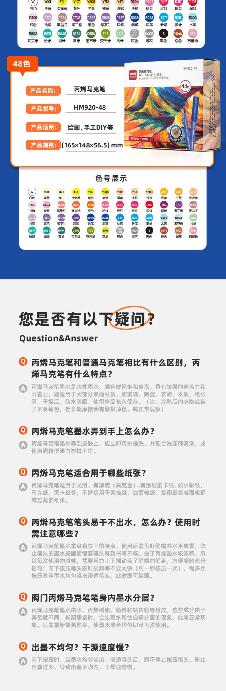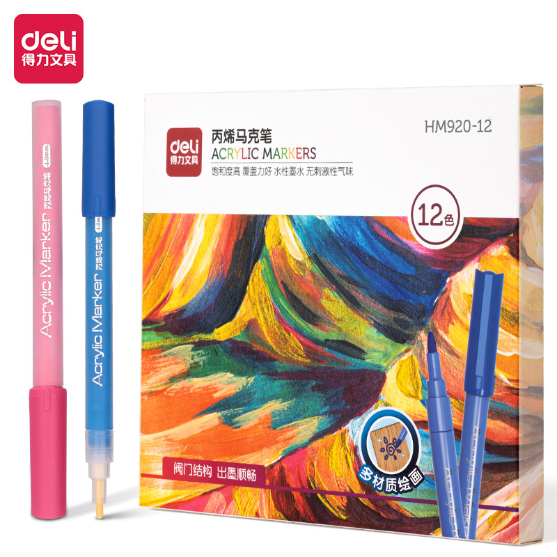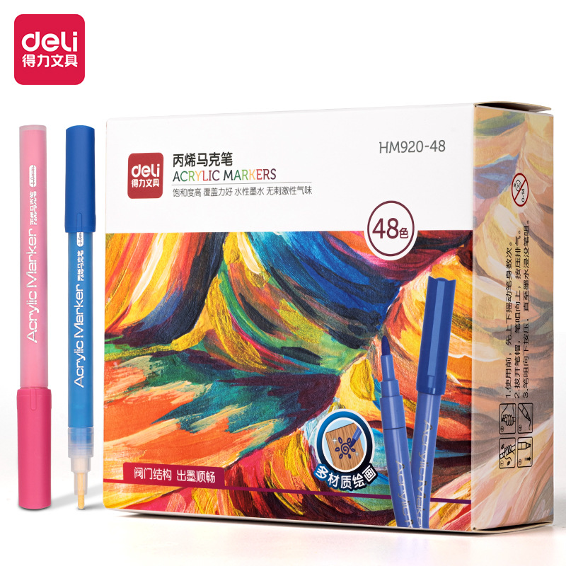 델리 밸브 아크릴 마커 도매 HM920 컬러 박스 프레스 잉크 빠른 건조 누출 방지 학생 색칠 펜