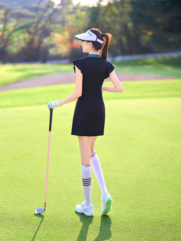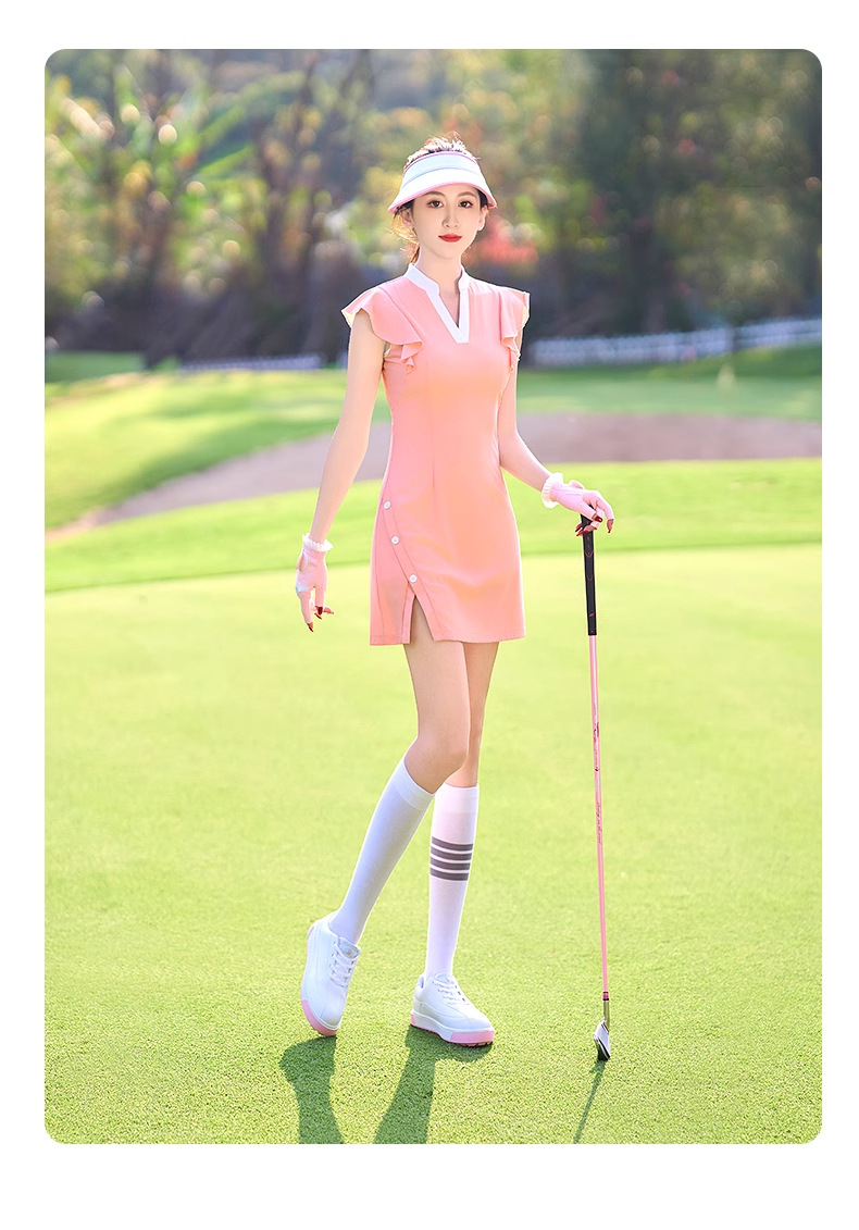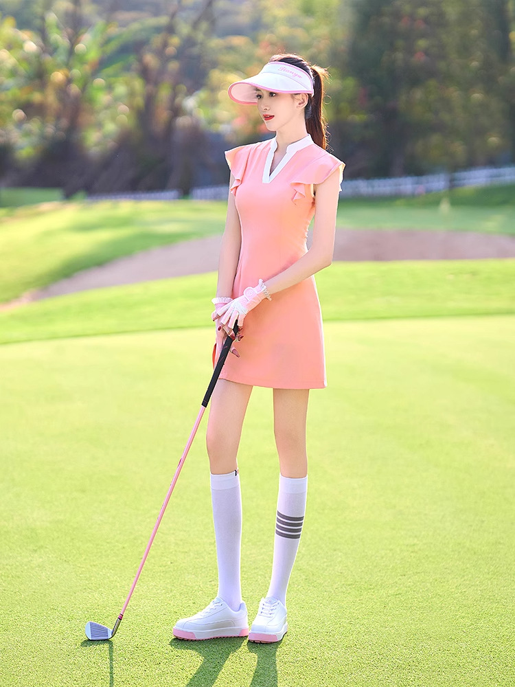 골프 여성 의류 원피스 여름 예술적 패션 허리 타이트 스포츠 원피스 V 넥 슬림 핏 슬리밍 의류 탑스토어 가기