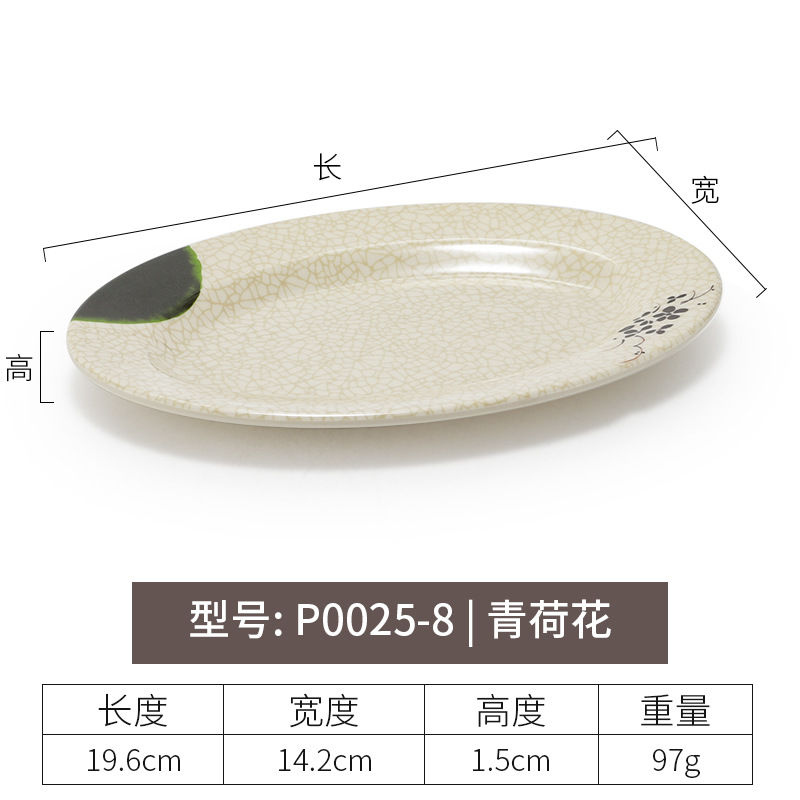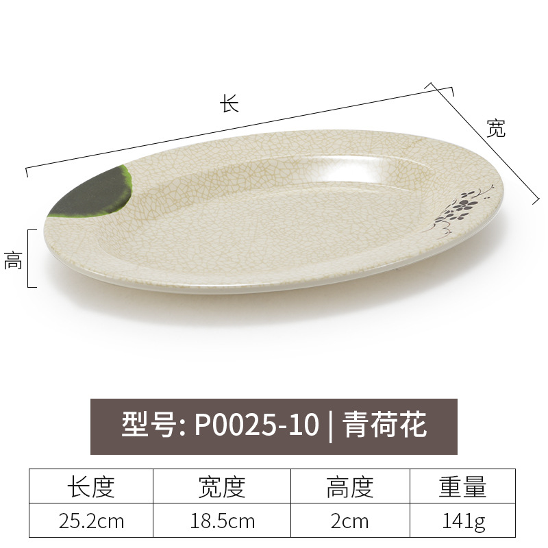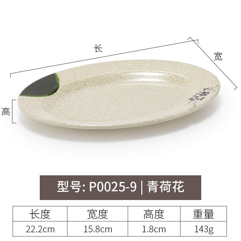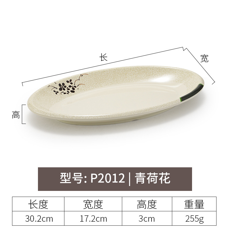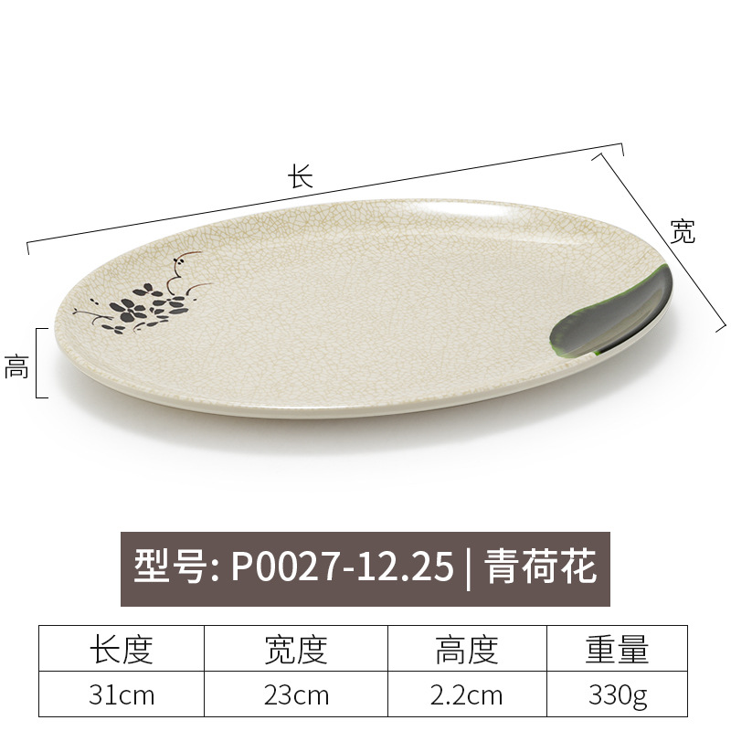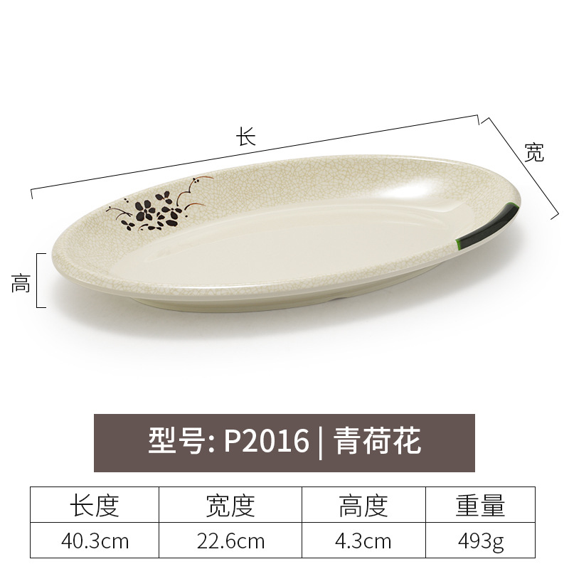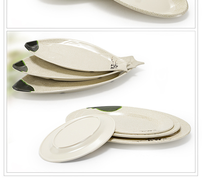 멜라민 녹색 연꽃 타원형 접시 플라스틱 요리 모방 도자기 레스토랑 볶음 접시 레스토랑 식기 생선 접시 상업