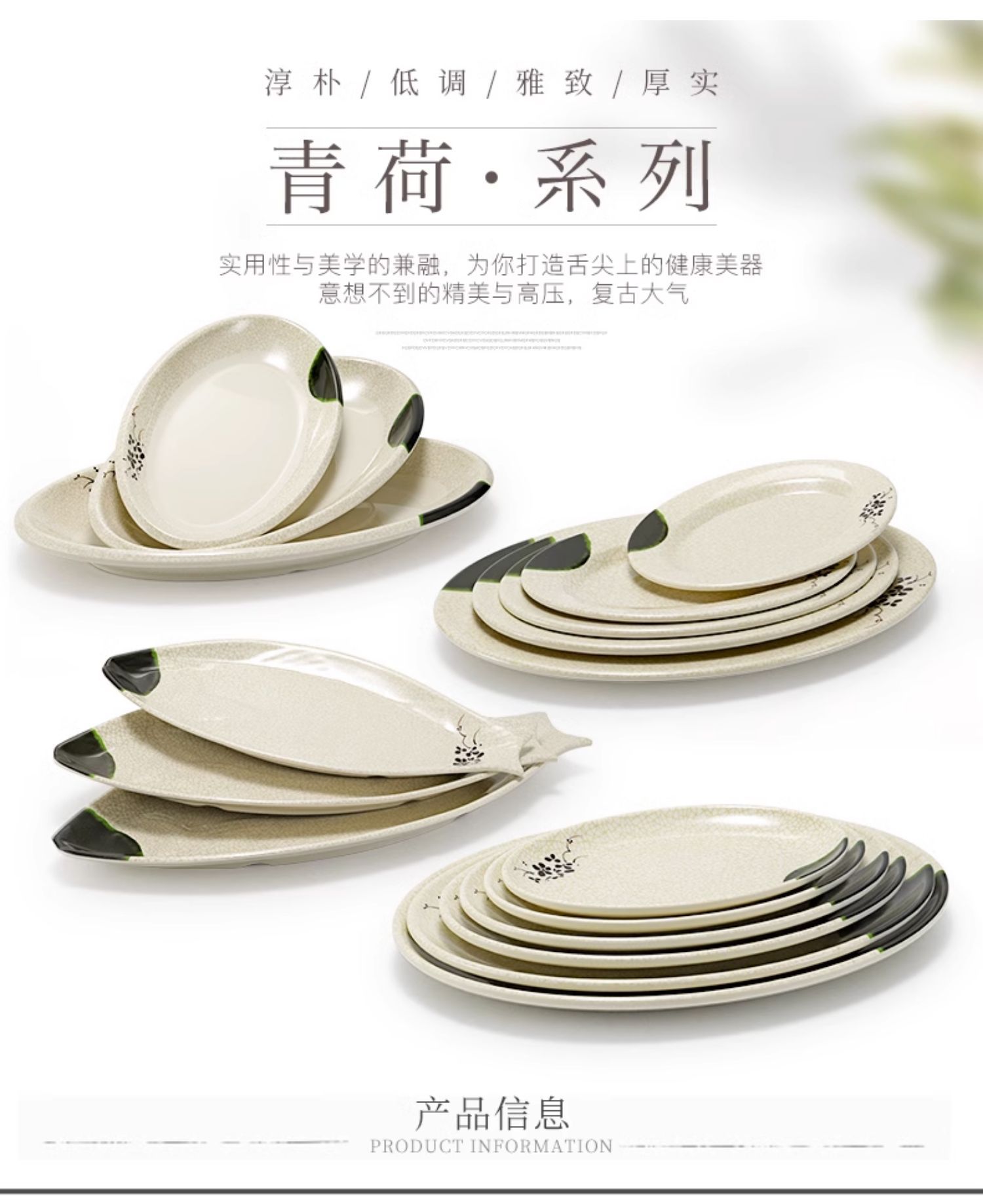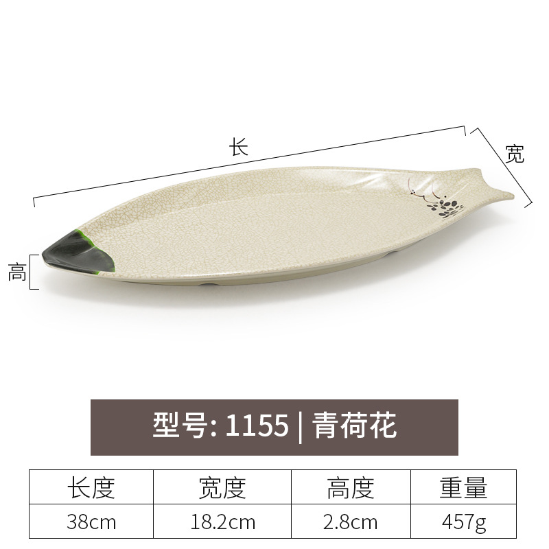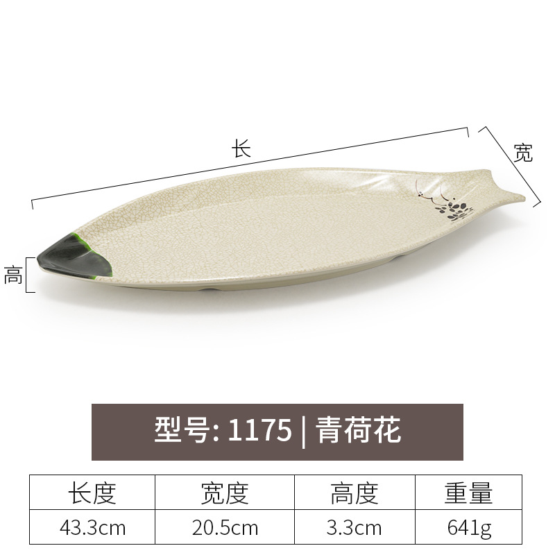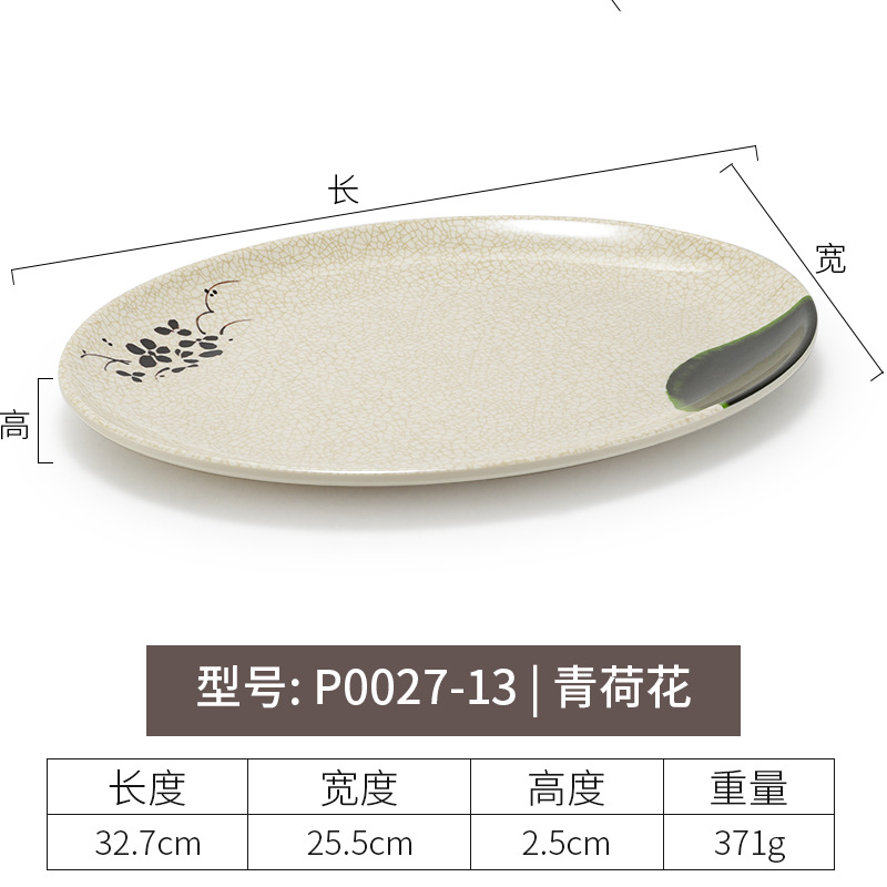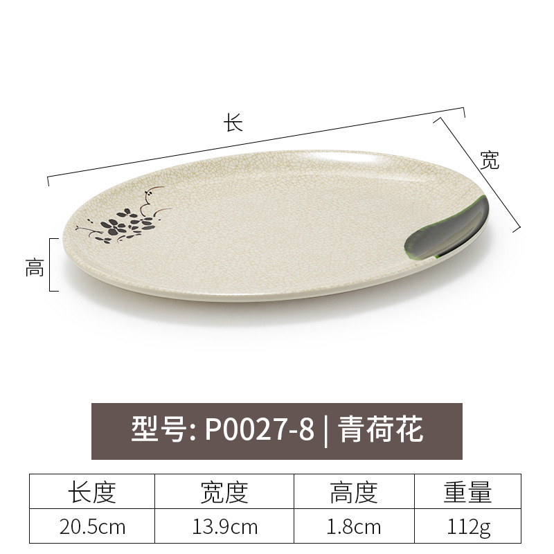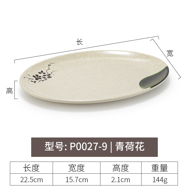 멜라민 녹색 연꽃 타원형 접시 플라스틱 요리 모방 도자기 레스토랑 볶음 접시 레스토랑 식기 생선 접시 상업