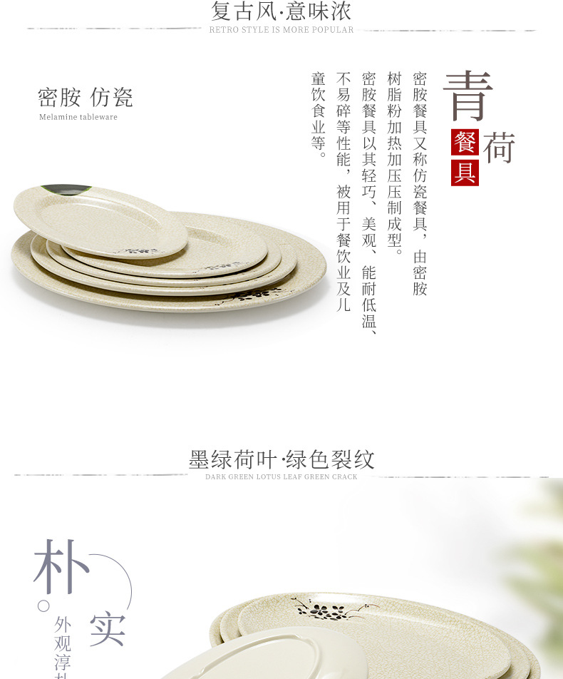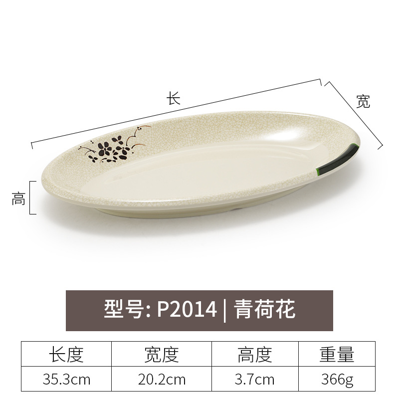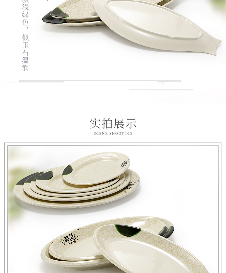 멜라민 녹색 연꽃 타원형 접시 플라스틱 요리 모방 도자기 레스토랑 볶음 접시 레스토랑 식기 생선 접시 상업스토어 가기