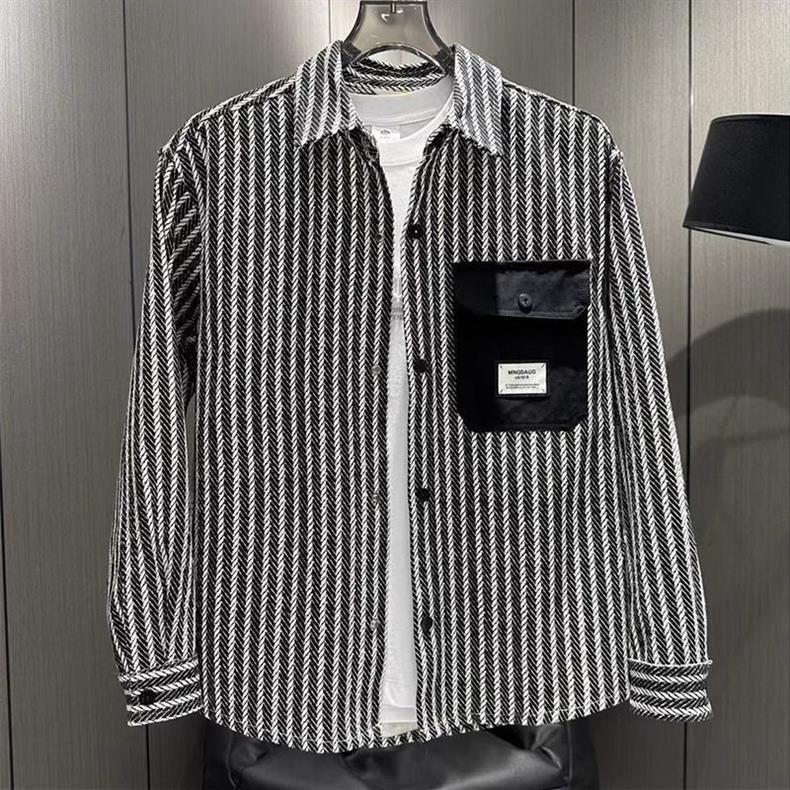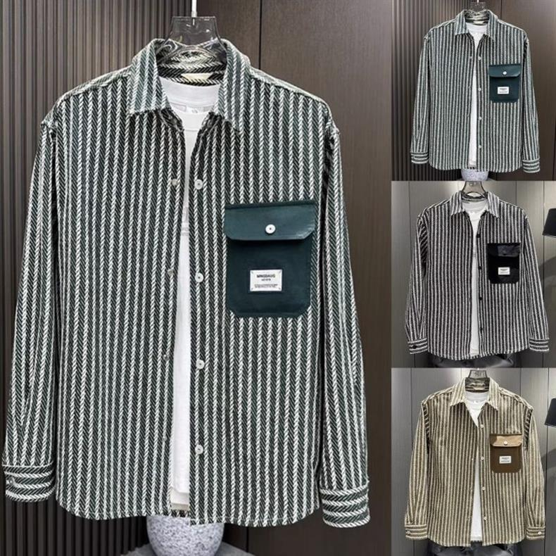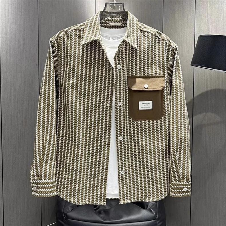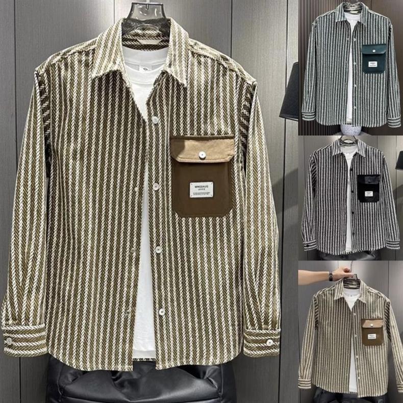 트렌디 한 다재다능한 캐주얼 코트 유행 긴팔 셔츠 다용도 옷깃 셔츠와 일치하는 가을 새로운 남성 줄무늬 색상스토어 가기