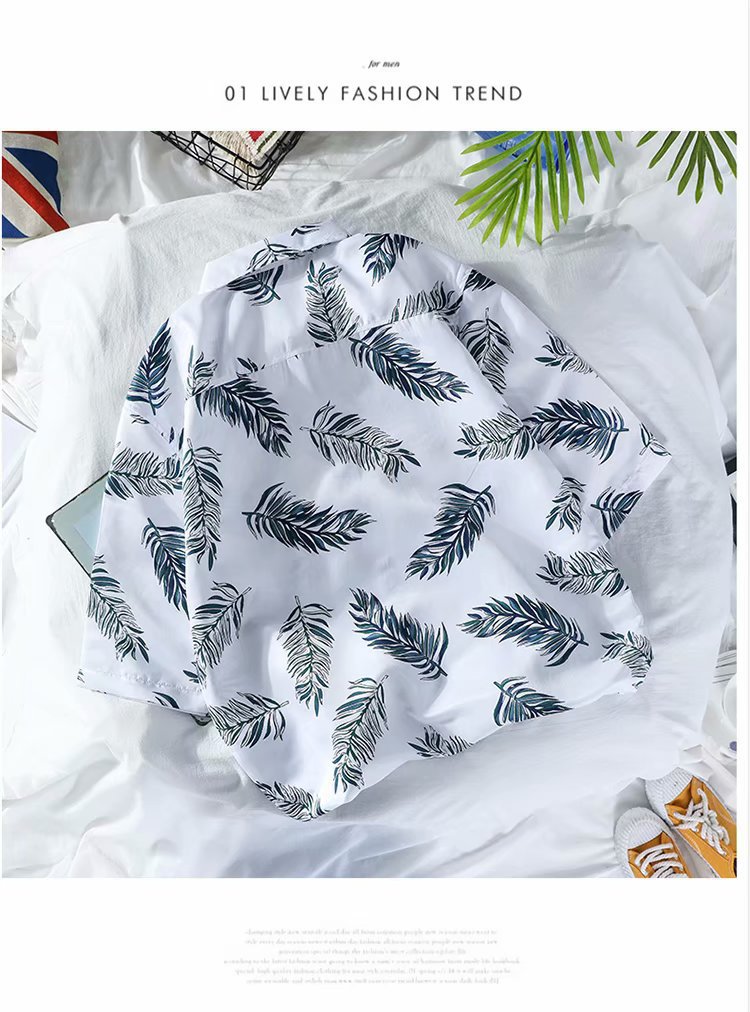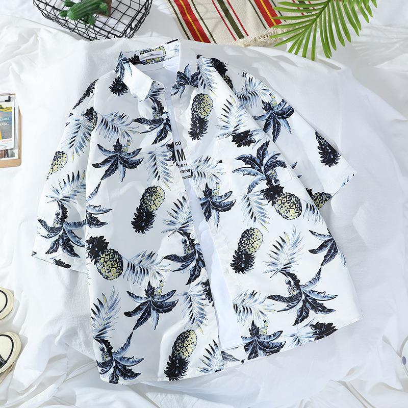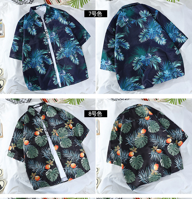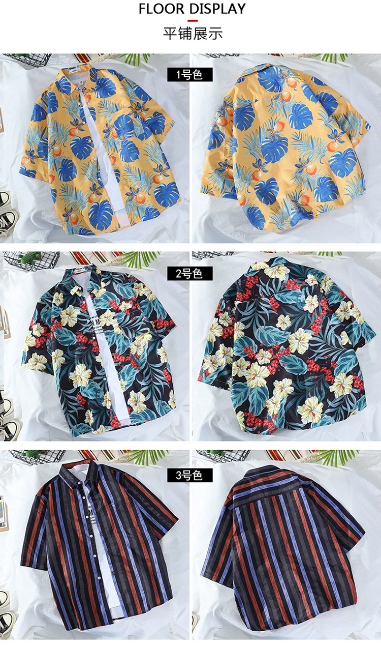 하와이안 플라워 셔츠 남성 복고풍 홍콩 스타일 캐주얼 루즈 홍콩 스타일 해변 휴가 꽃 커플 반팔 셔츠 트렌디스토어 가기