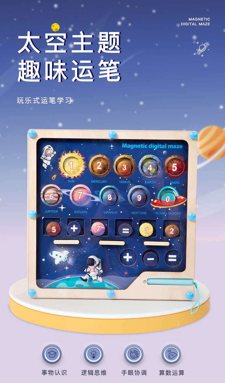어린이 나무 공간 테마 재미 펜 미로 자기 공 문자 인지 사고 교육 조기 교육 장난감스토어 가기