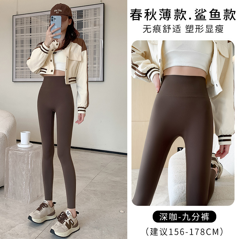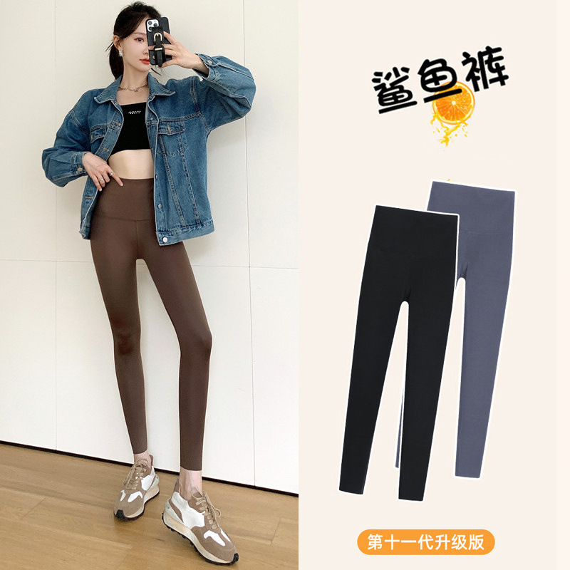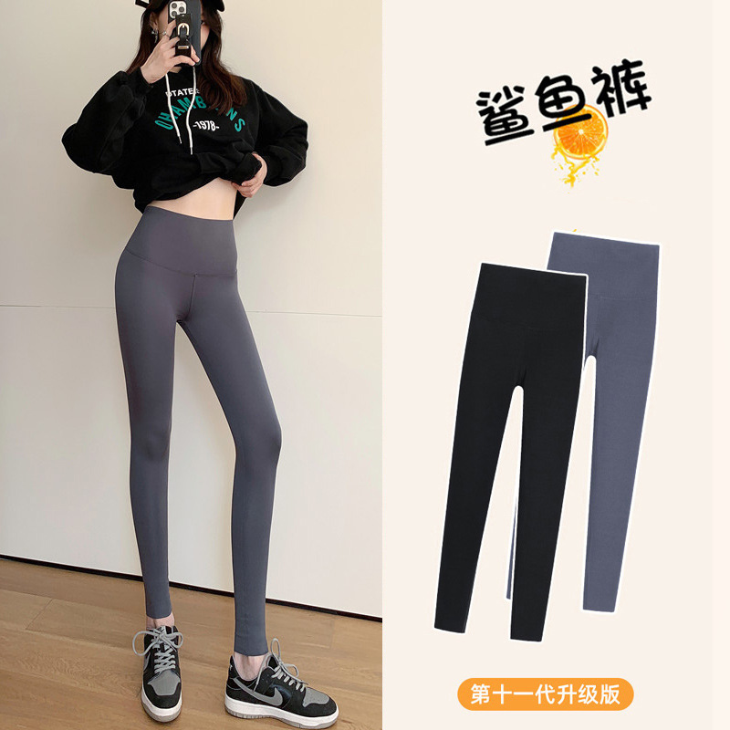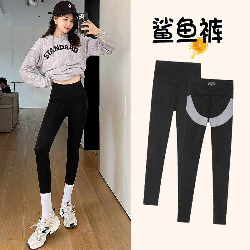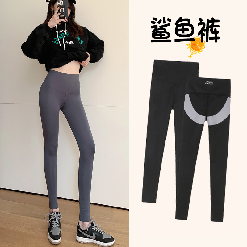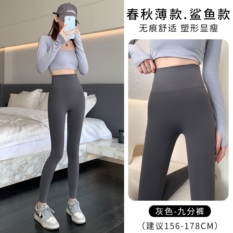 상어 바지 여성 겉옷 당황스러운 라인 봄과 여름 얇은 무광택 스키니 다리 회색 요가 바닥이없는 바비 바지스토어 가기