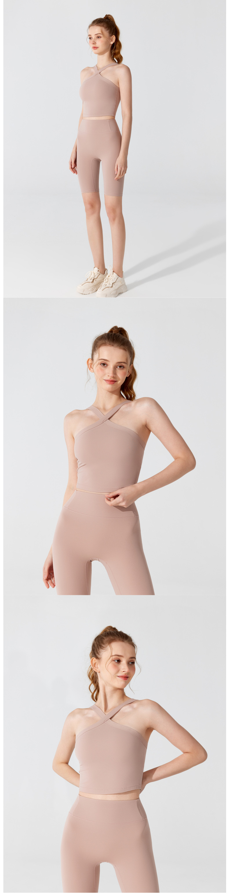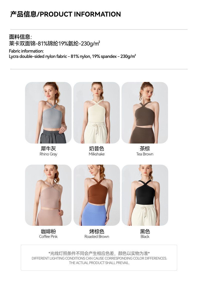 크로스보더 라이크라 스포츠 브라 요가 베스트 스타일 브라 누드느낌 타이트핏 신축성 피트니스 탑 가슴패드 포함 아름다운 등 디자인