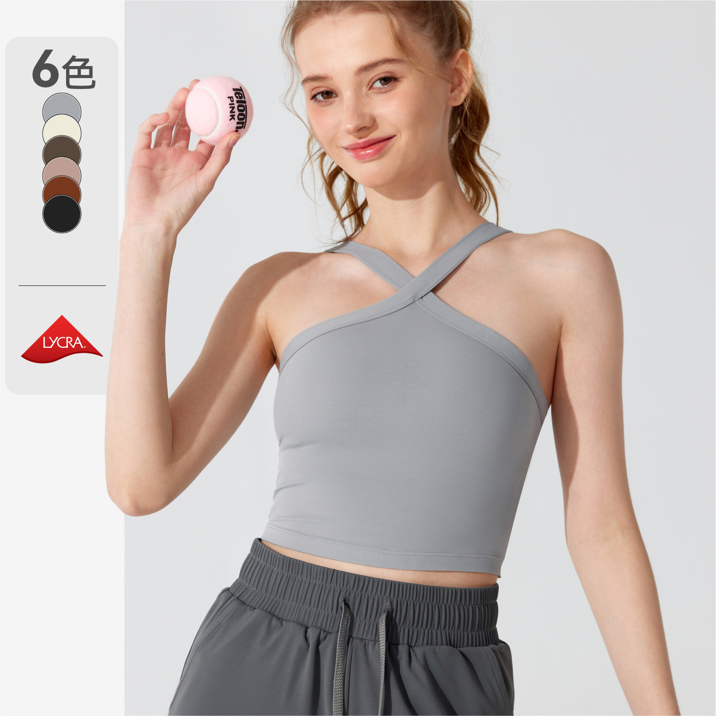 크로스보더 라이크라 스포츠 브라 요가 베스트 스타일 브라 누드느낌 타이트핏 신축성 피트니스 탑 가슴패드 포함 아름다운 등 디자인스토어 가기