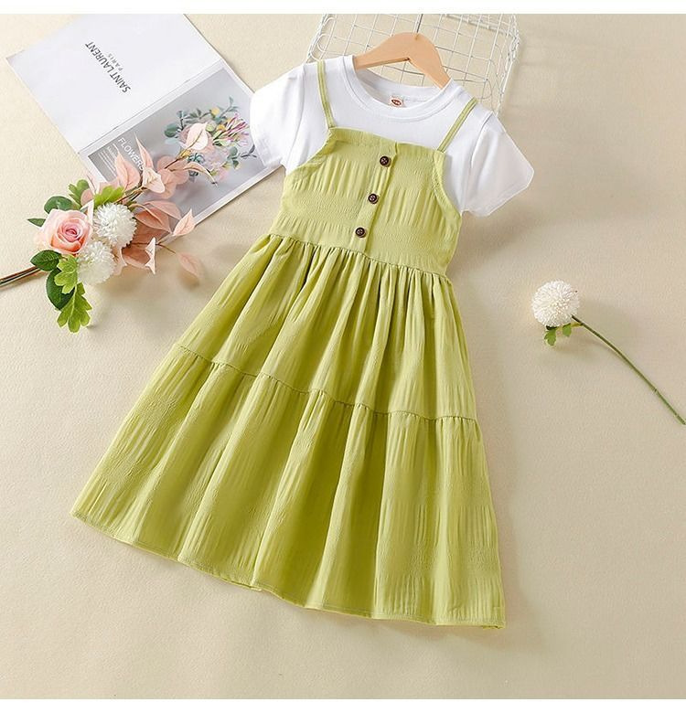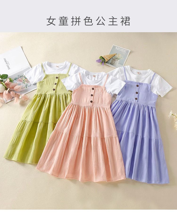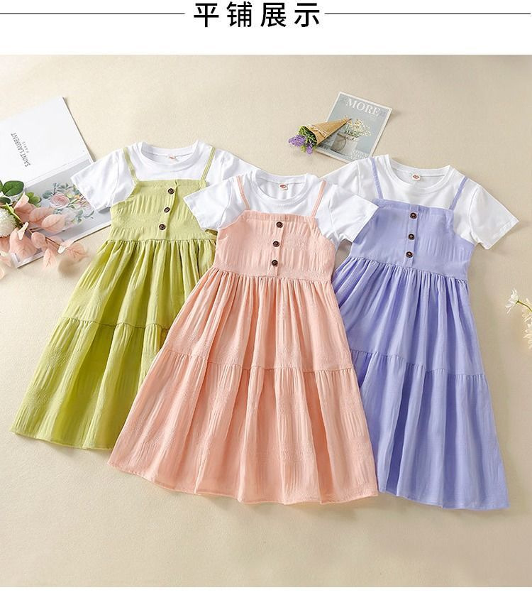 소녀 원피스 2024 새로운 가짜 투피스 서양식 소녀 여름 원피스 어린이 원피스 공주 원피스 어린 소녀스토어 가기