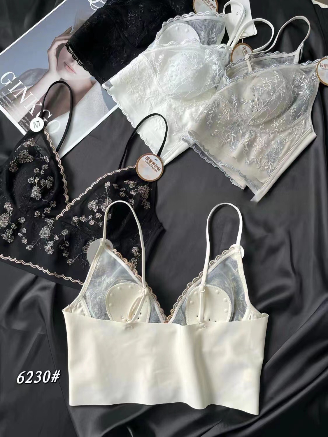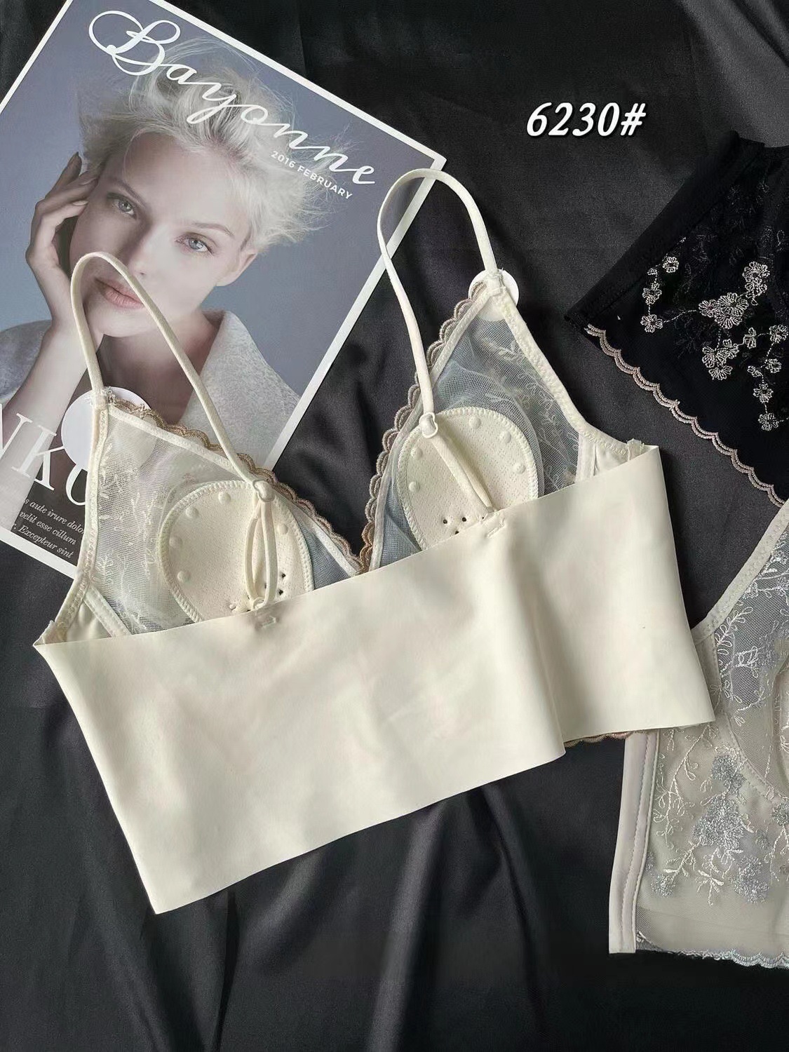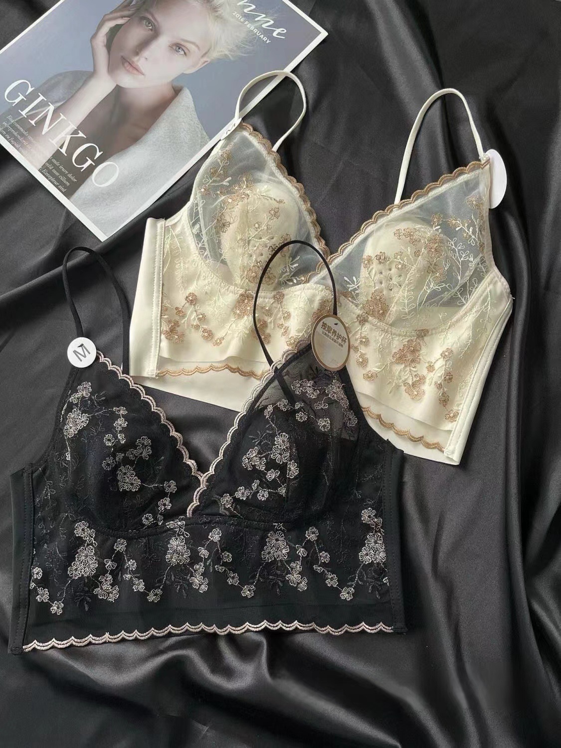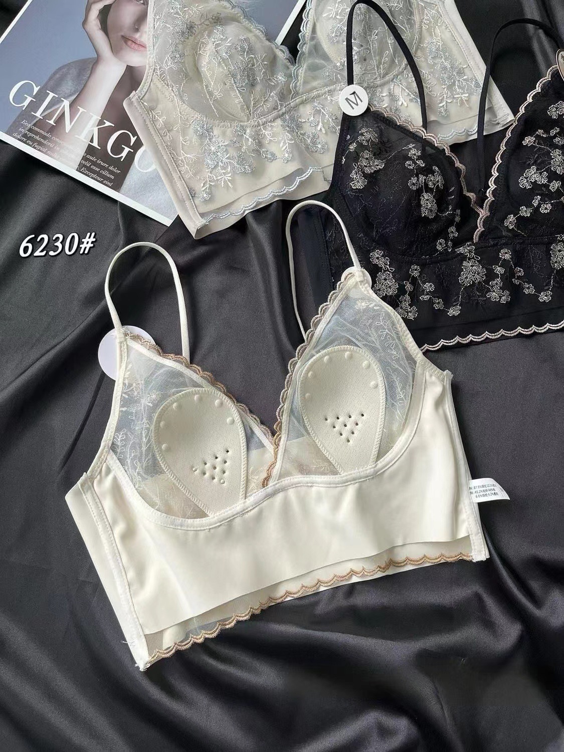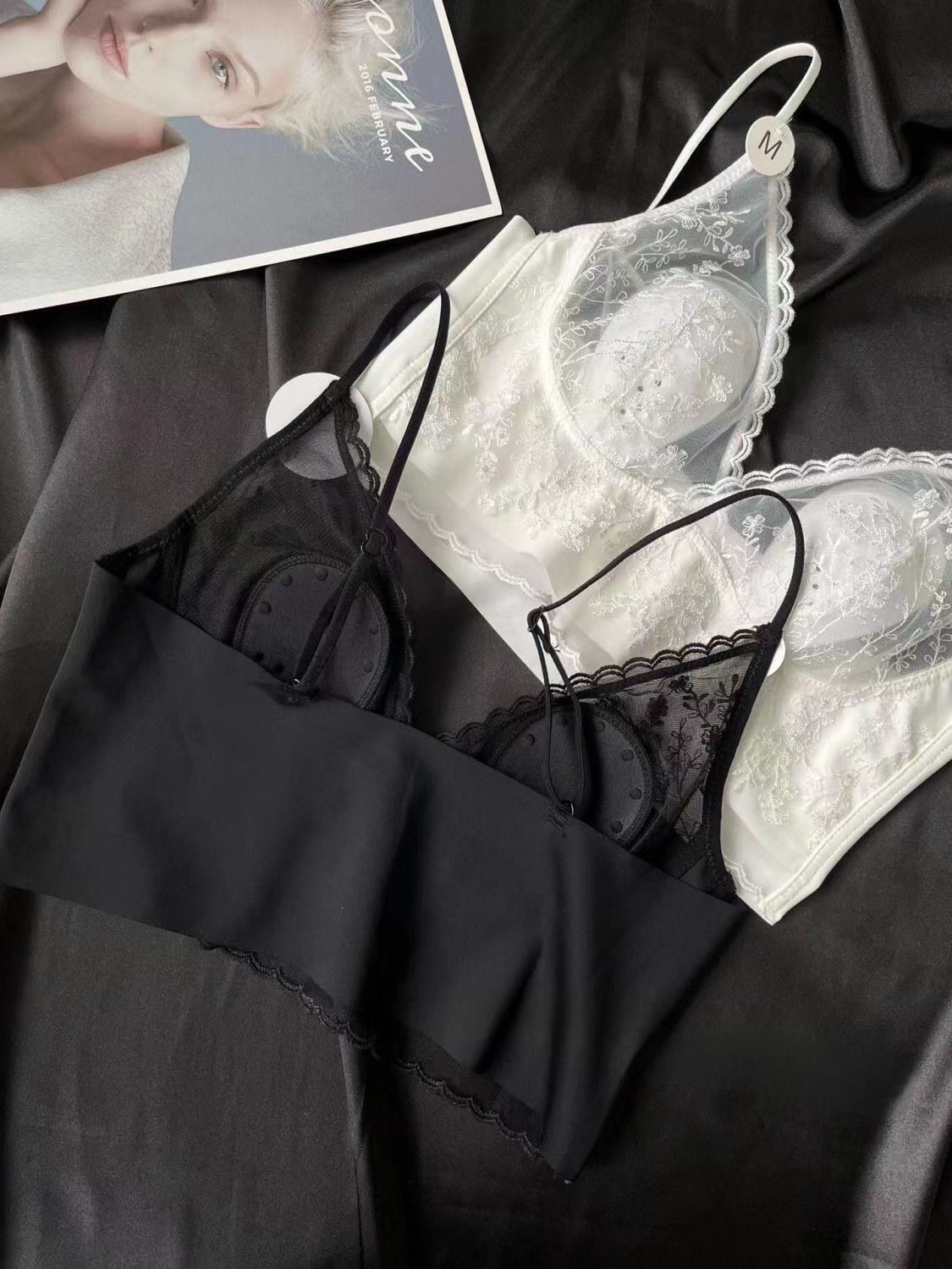 큰 가슴 작은 프랑스 복고풍 자수 레이스 토끼 이어 컵 스틸 링 원활한 얇은 풀오버 브라 스트랩 없음