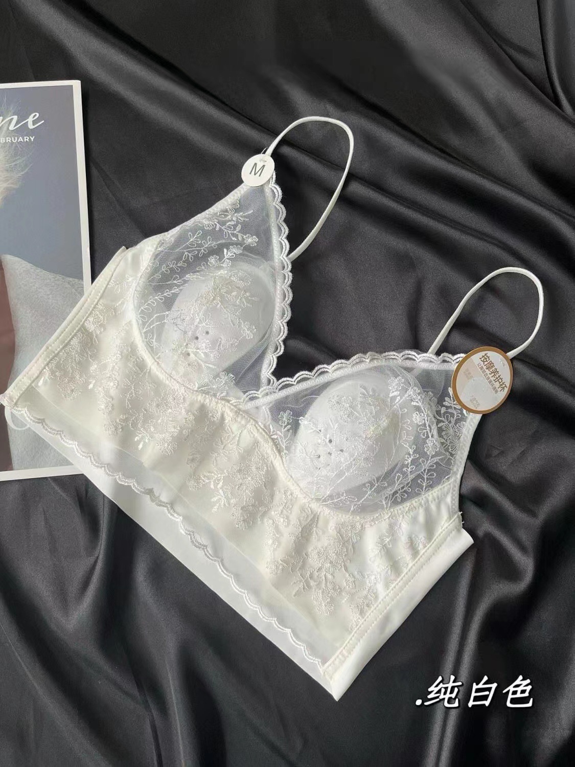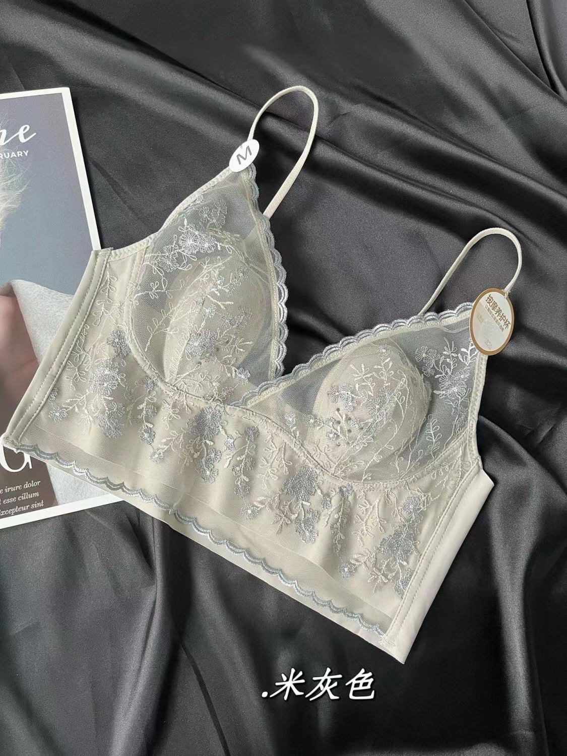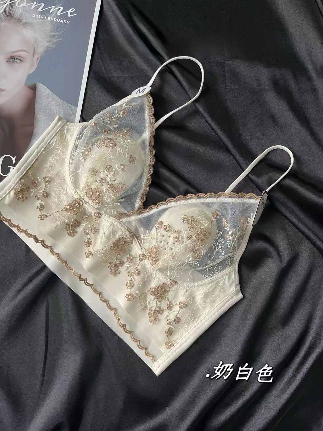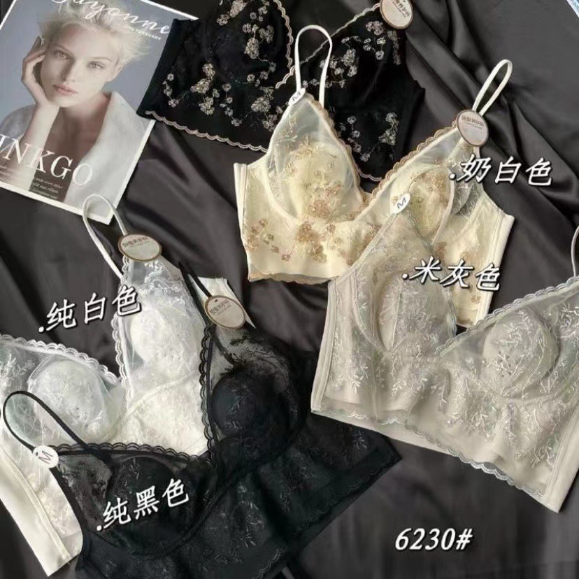 큰 가슴 작은 프랑스 복고풍 자수 레이스 토끼 이어 컵 스틸 링 원활한 얇은 풀오버 브라 스트랩 없음스토어 가기
