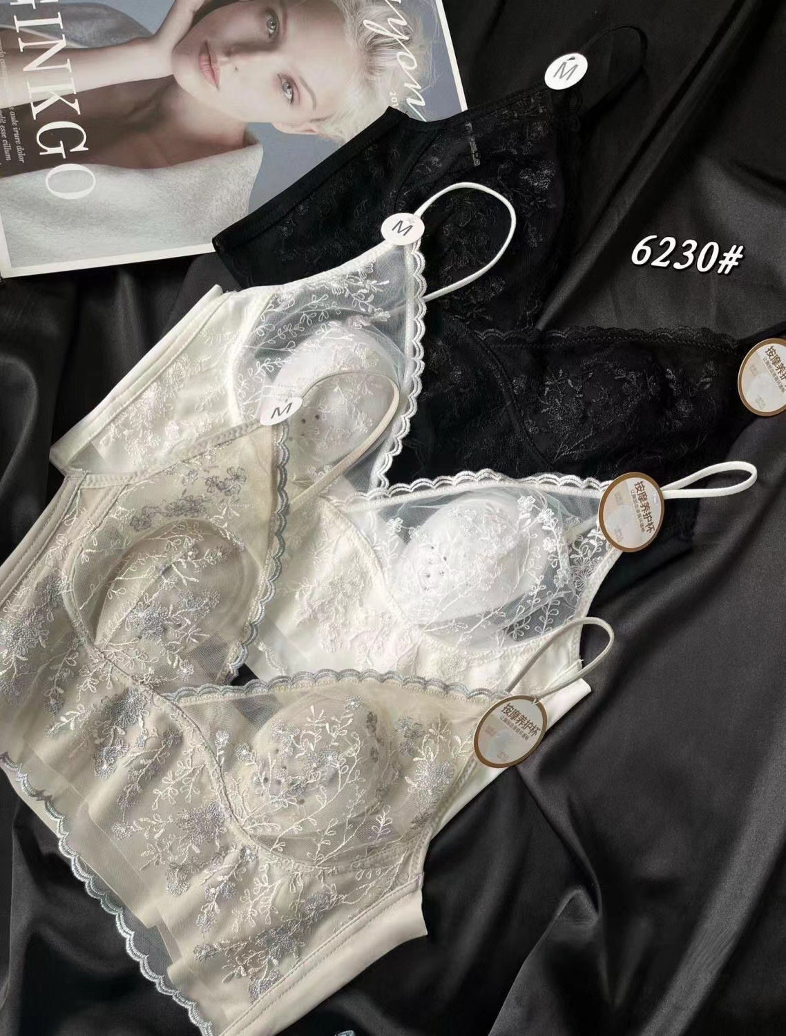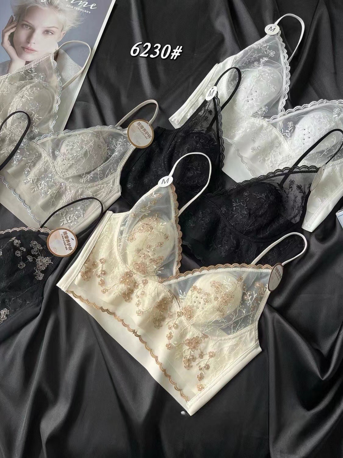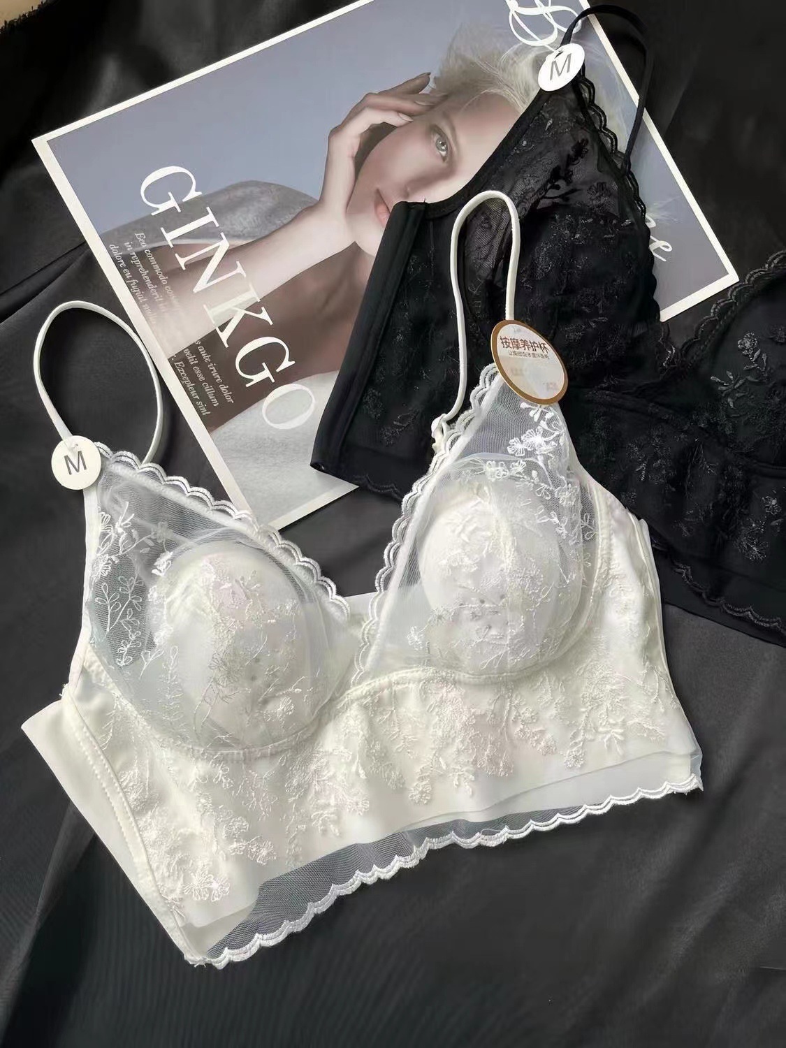 큰 가슴 작은 프랑스 복고풍 자수 레이스 토끼 이어 컵 스틸 링 원활한 얇은 풀오버 브라 스트랩 없음스토어 가기