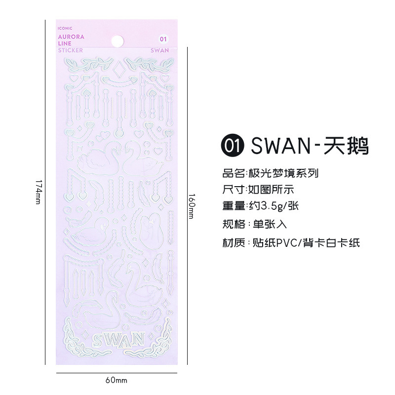 오로라 라인 레이저 스티커 DIY 사진 장식 기본 콜라주 소재 구 카 손 계정 문구 스티커