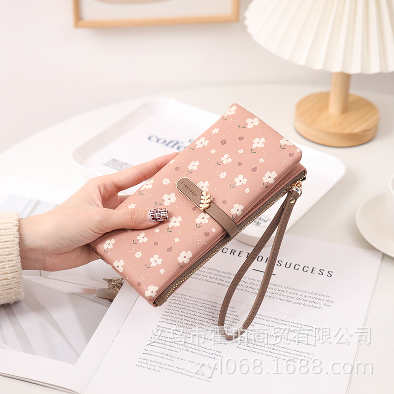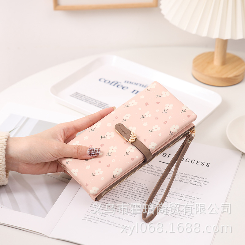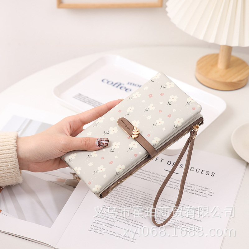 跨境外贸钱包女长款日韩PU皮小清新叶子搭扣简约百搭女手拿包卡包