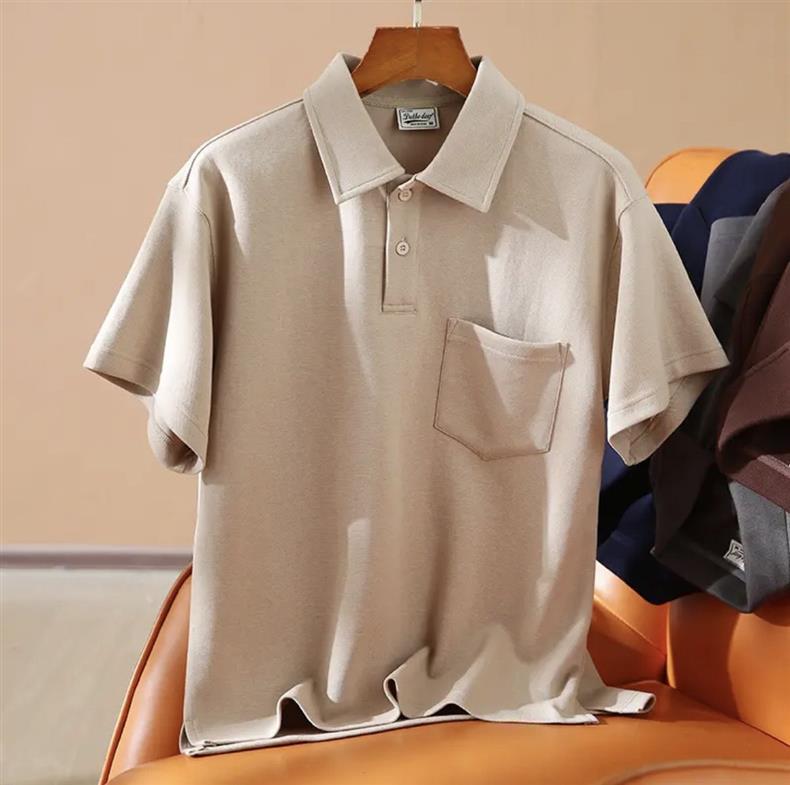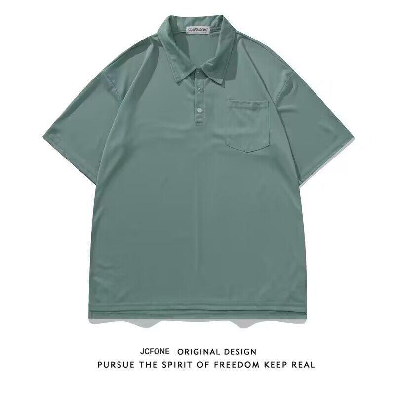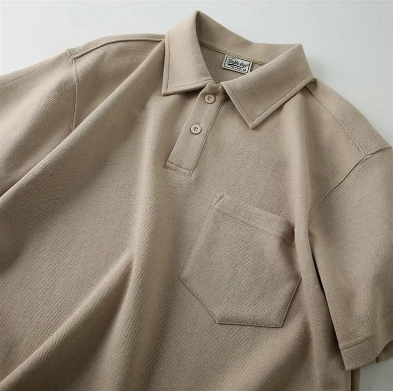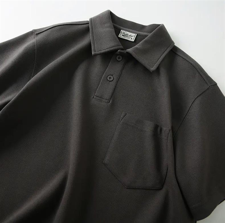 2024 여름 새로운 일본식 헤비 폴로 셔츠 남성용 캐주얼 단색 패션 라펠 탑 반소매 티셔츠